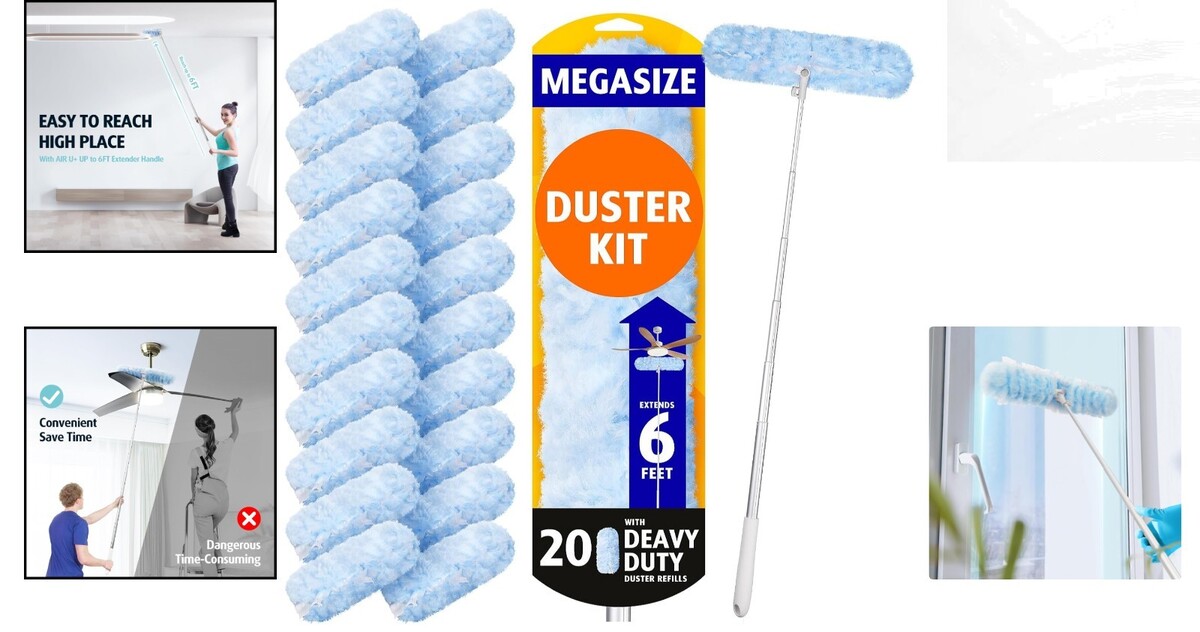 Lightweight 6 ft Extendable Duster with 20 Microfiber Pads - Compact & Efficient