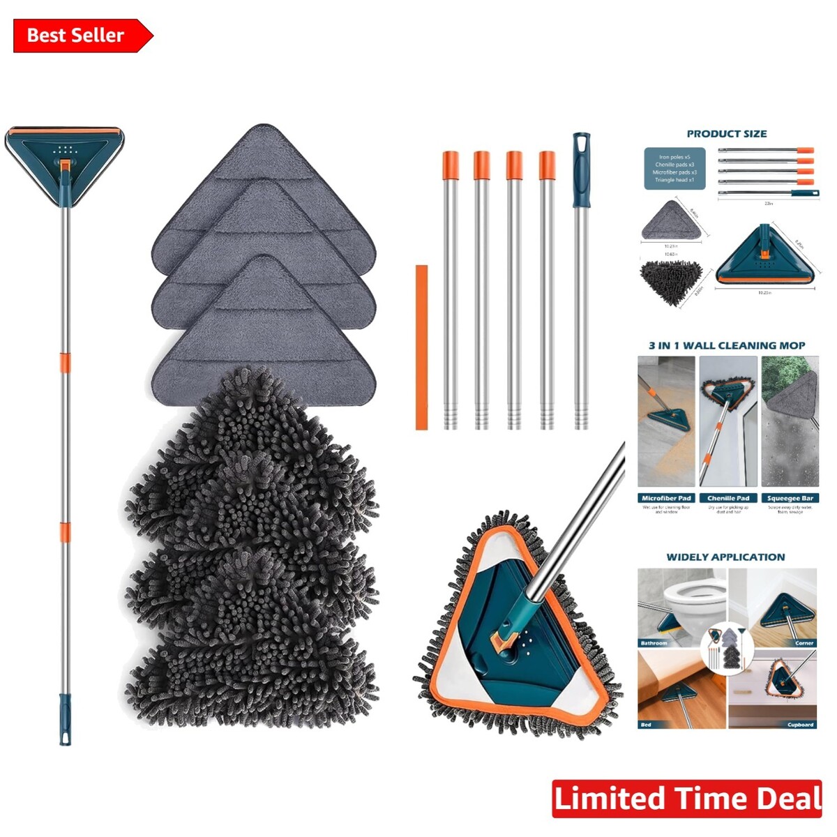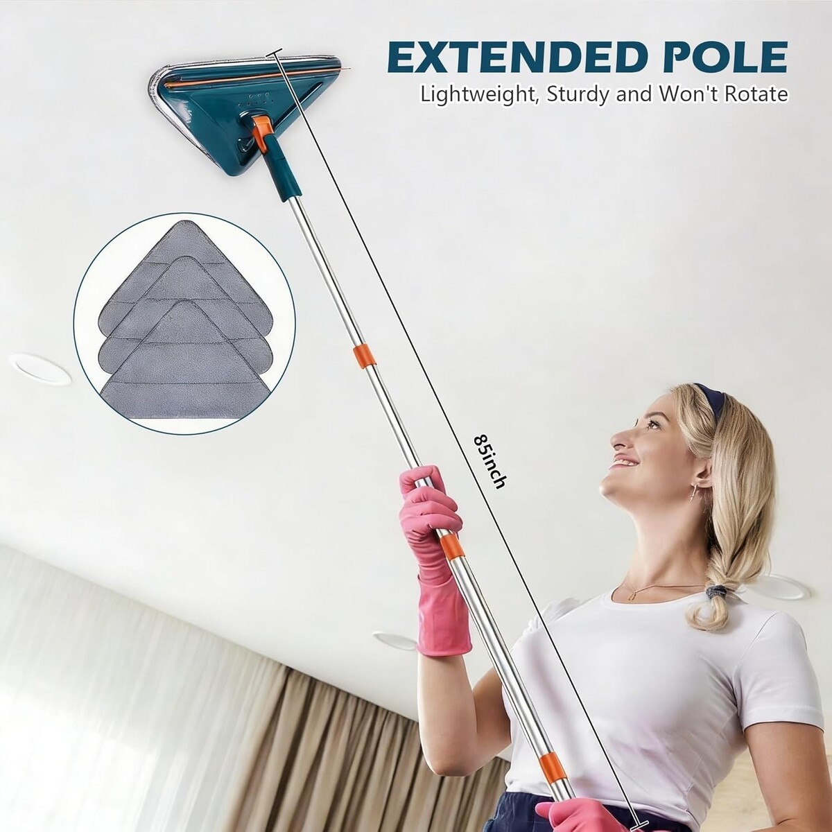Suitable For: Flat Mop,Wall Washer,Ceiling Fans,Baseboard,Floors,Dust,Walls,Windows,Shower Doors,Glasses,Furniture,Corners