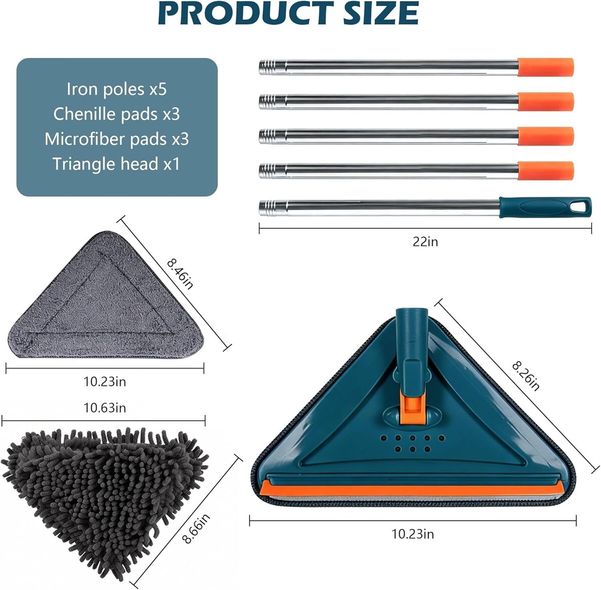Complete Cleaning Kit: Includes 3 microfiber pads, 3 chenille mop pads, a silicone scraper strip, and 5 metal extension rods for all-encompassing cleaning scenarios.