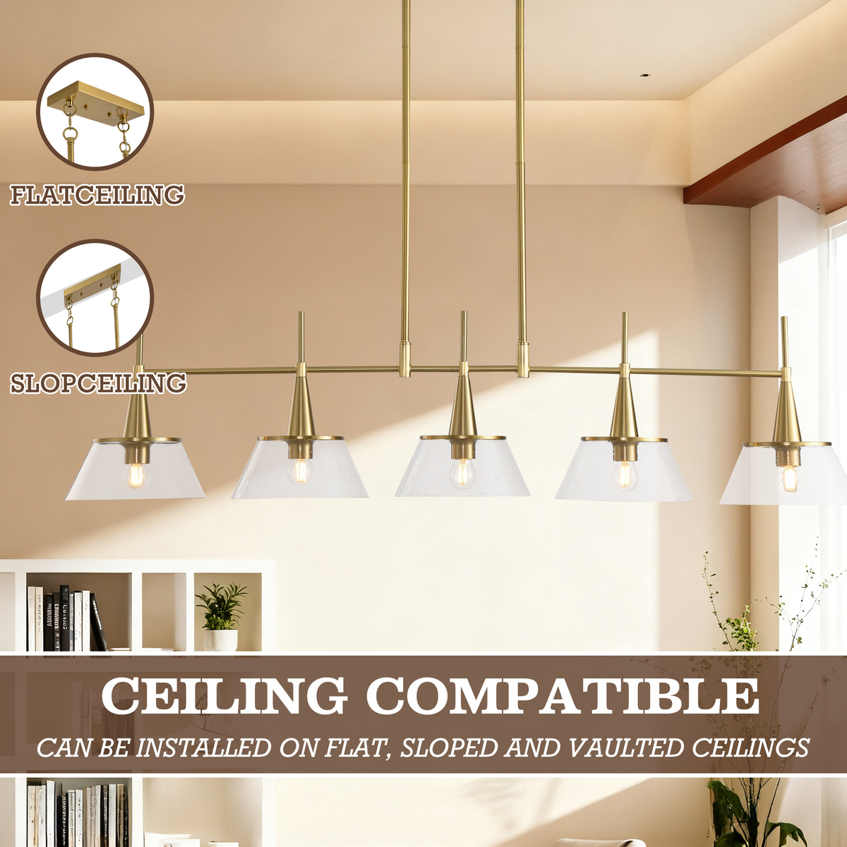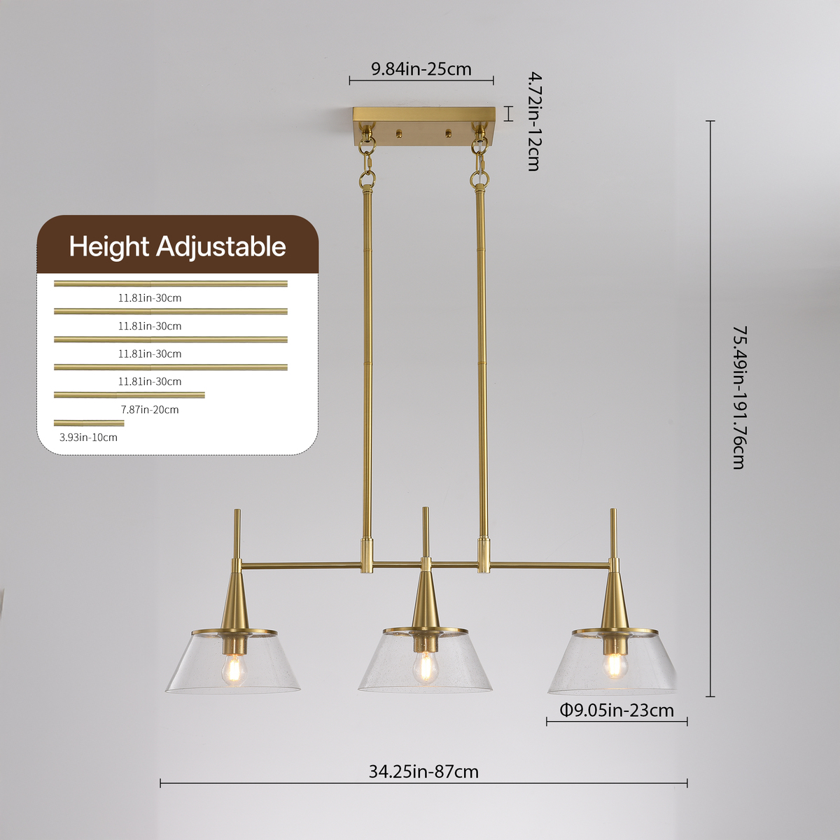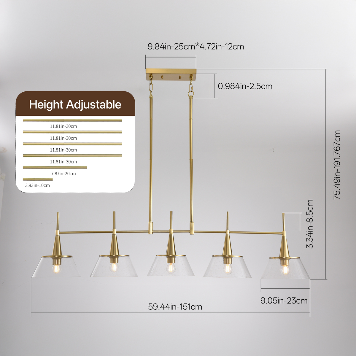 Farmhouse Linear Chandelier Gold Dining Room Kitchen Island Pendant Light