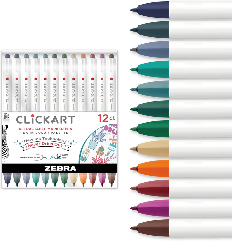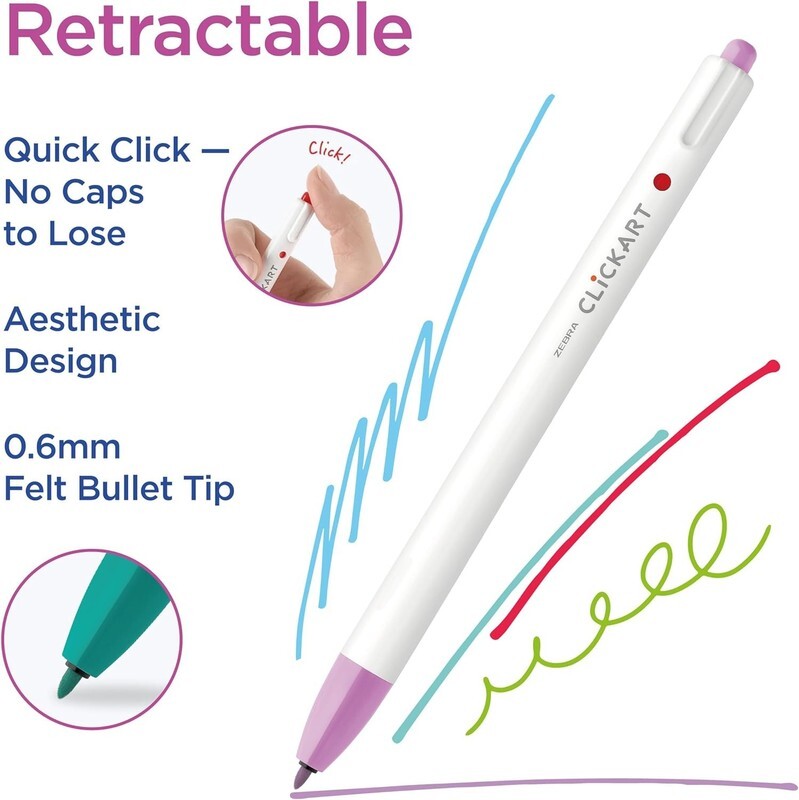 Capless Design: These retractable markers for school from Zebra Pen feature a capless design, eliminating the hassle of lost caps. Perfect as teacher supplies, the clean white barrel adds a touch of elegance to your workspace