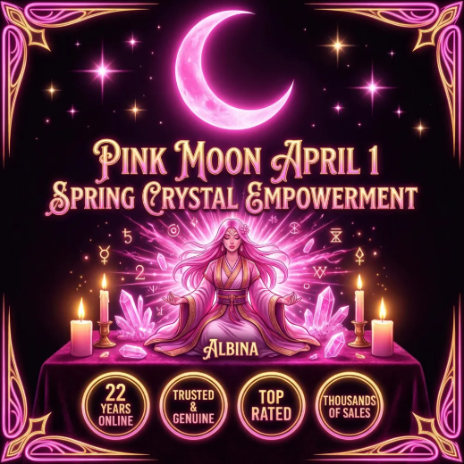 APRIL1 PINK MOON SPRING CRYSTAL EMPOWERMENT RITUAL 130+ WITCHES MAGICK ALBINA