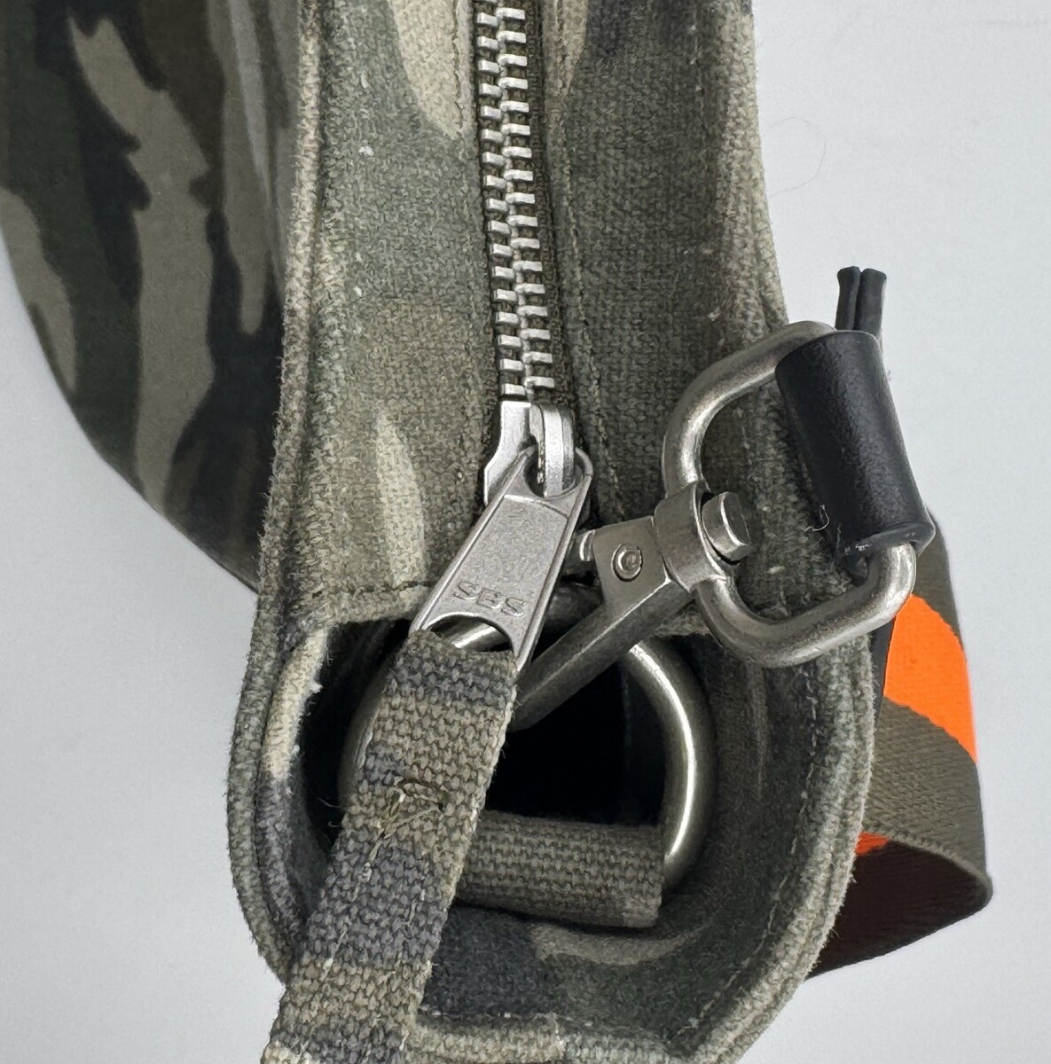 Quilted Koala Kanvas City Bag Green Camo Canvas Crossbody Orange Guitar Strap