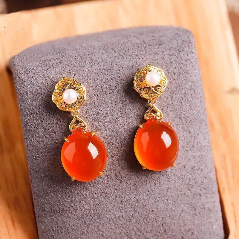These dangle earrings feature natural red agate as the main stone. The design is simple and elegant, suitable for daily wear and various occasions. Each stone shows natural texture and color variations, making every pair unique. Lightweight and comfortable for all-day wearing. Ideal for personal use or as a delicate gift for family and friends.