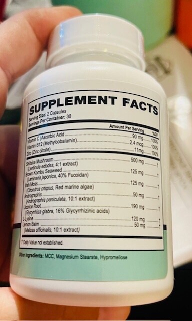 Zinc, Vitamin C, Shiitake Mushroom, Lysine, Red Marine Algae |