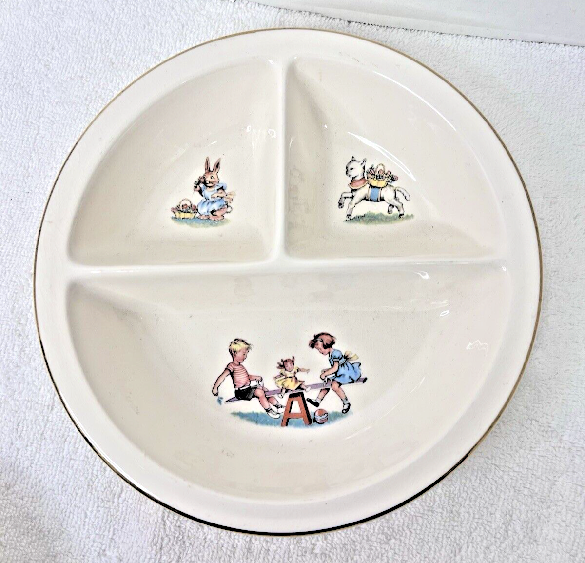 Salem China Co USA Baby Bowl Seesaw Lamb Bunny Divided Bowl 7 3/4 x 1.5 inch