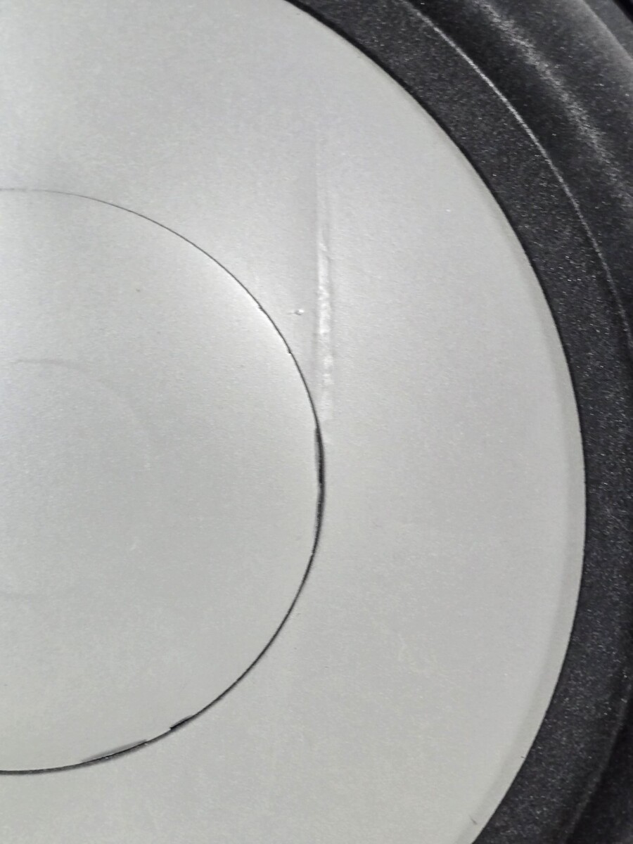 The speaker has been tested for sound quality. Sound is good. There is a dent line open the woofer from another speaker accidentally dropped on it. It did not hurt the speaker in any other way. Just left a mark on the woofer.