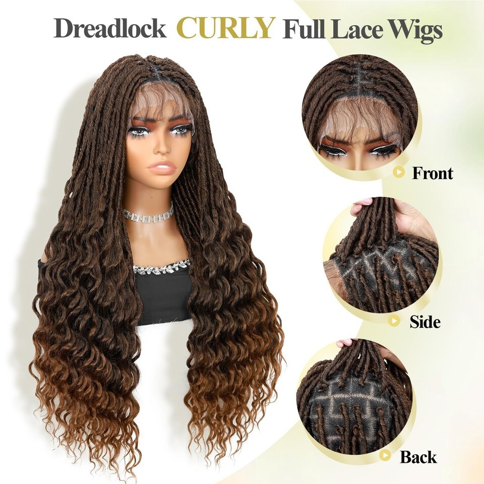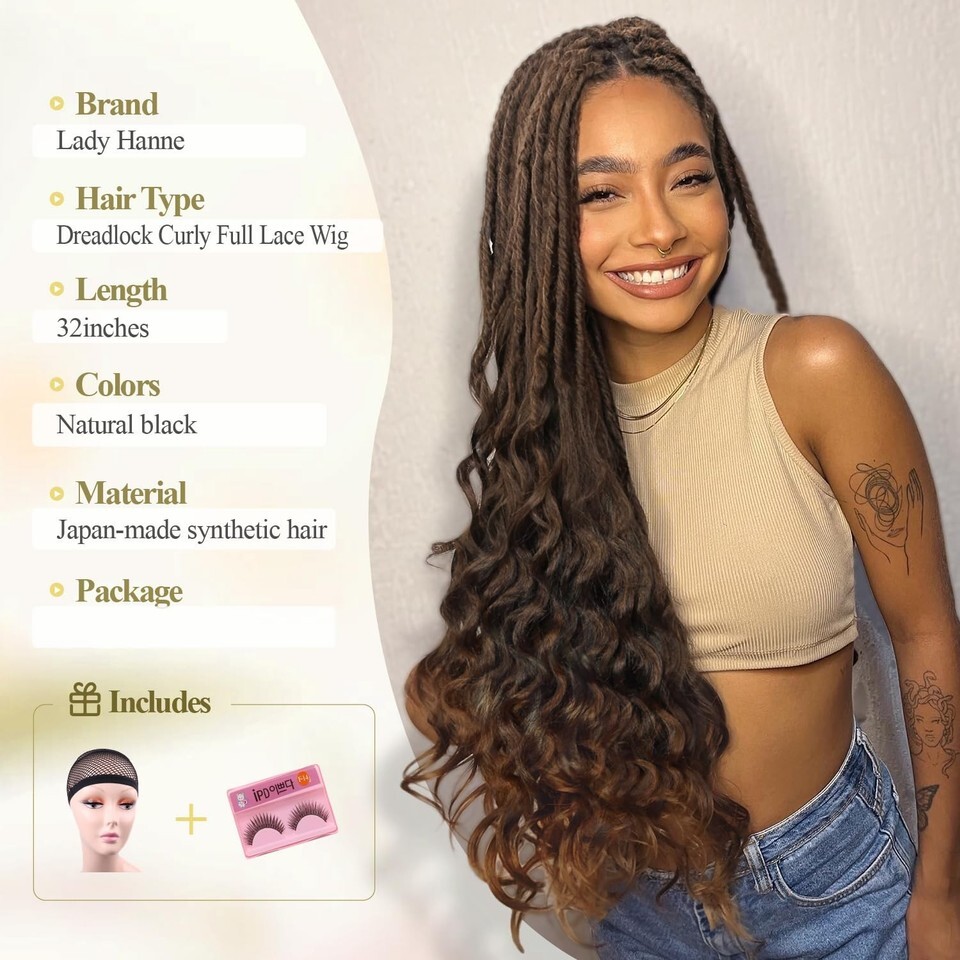 Lady Hanne Knotless Goddess Curly Full Lace Dreadlock Wigs for Black Women