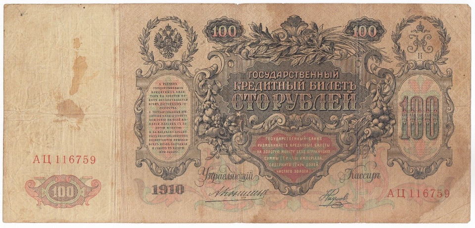 Russia, 100 Rubles, 1910 Issue, State Treasury Note, P13, VF