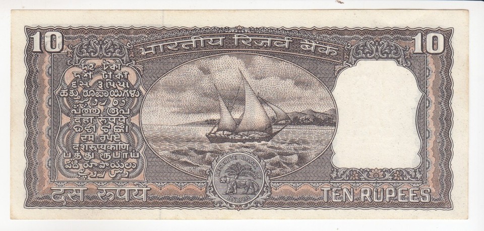 India, 10 Rupees, M. Narsimhan Sign. Black Boat Issue Banknote, P60e, XF