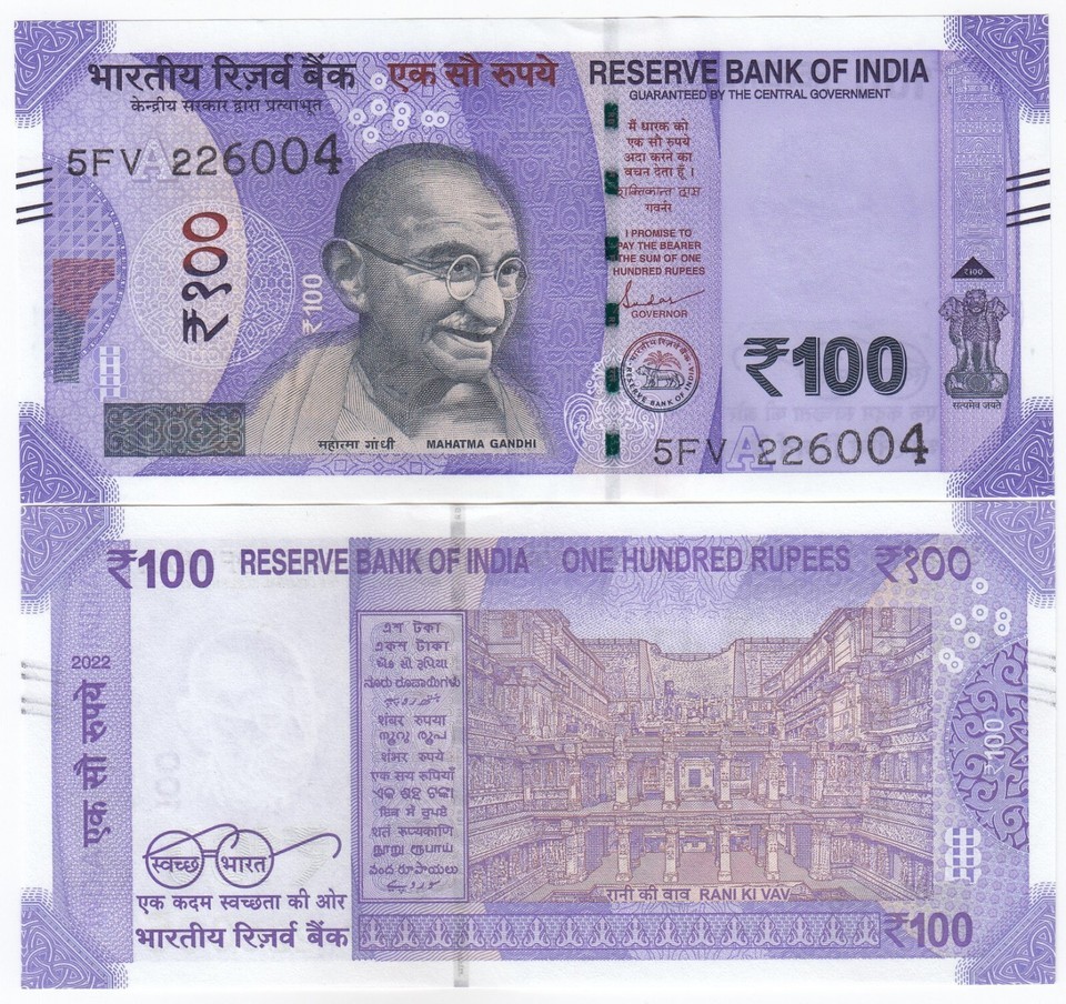 India, Set of 4 100,50,20,10 Rupee Banknotes, Last Issued Banknote, UNC- show...