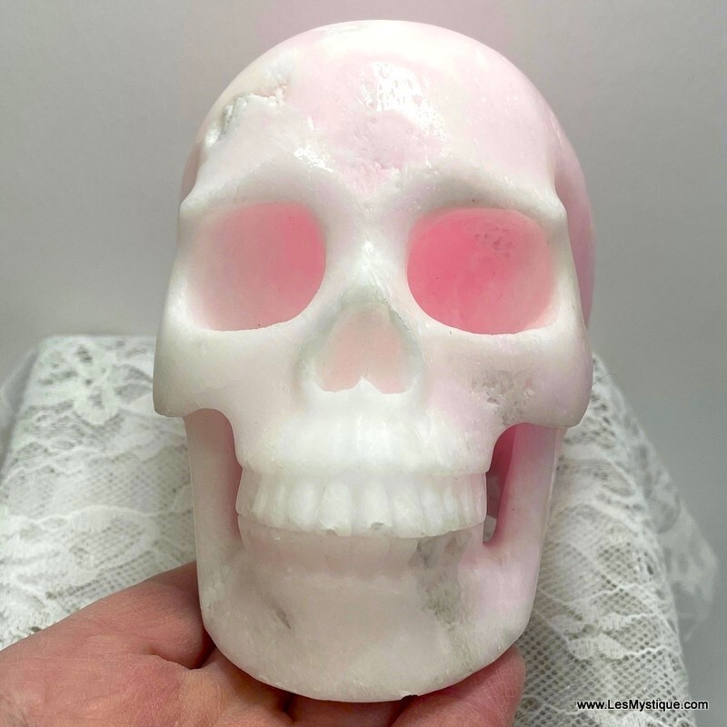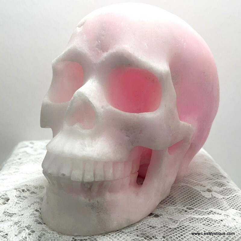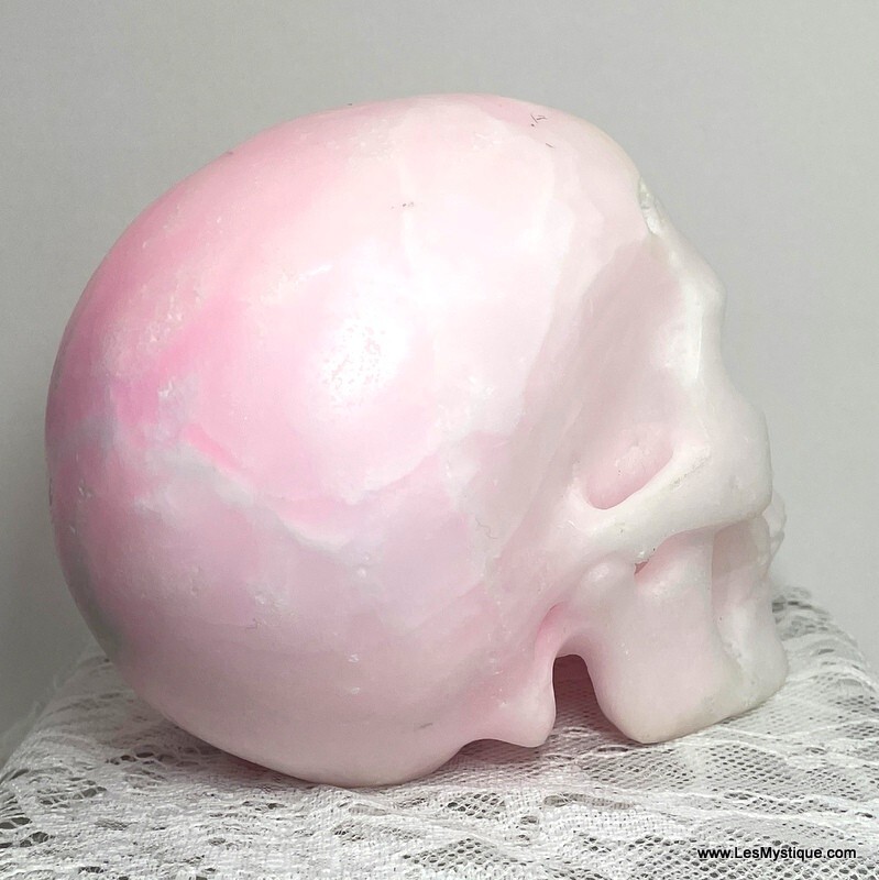 Large Pink Aragonite Crystal Skull Angels & Spirit Guide Contact Spiritual Realm