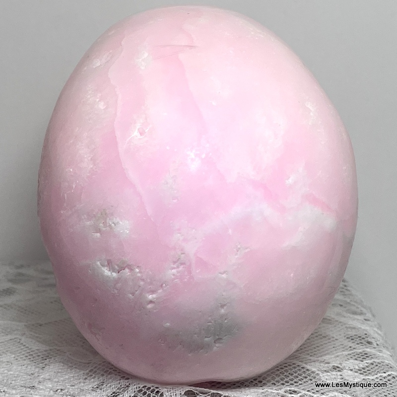 METAPHYSICAL / Spiritual properties: PINK ARAGONITE: Enhances meditation, raising ones vibrational level; Brings one into a peaceful state of pure tranquility; ensures hearing the information flowing through the heart chakra; helps one with patience; helps connect to the Angelic and Spiritual realms