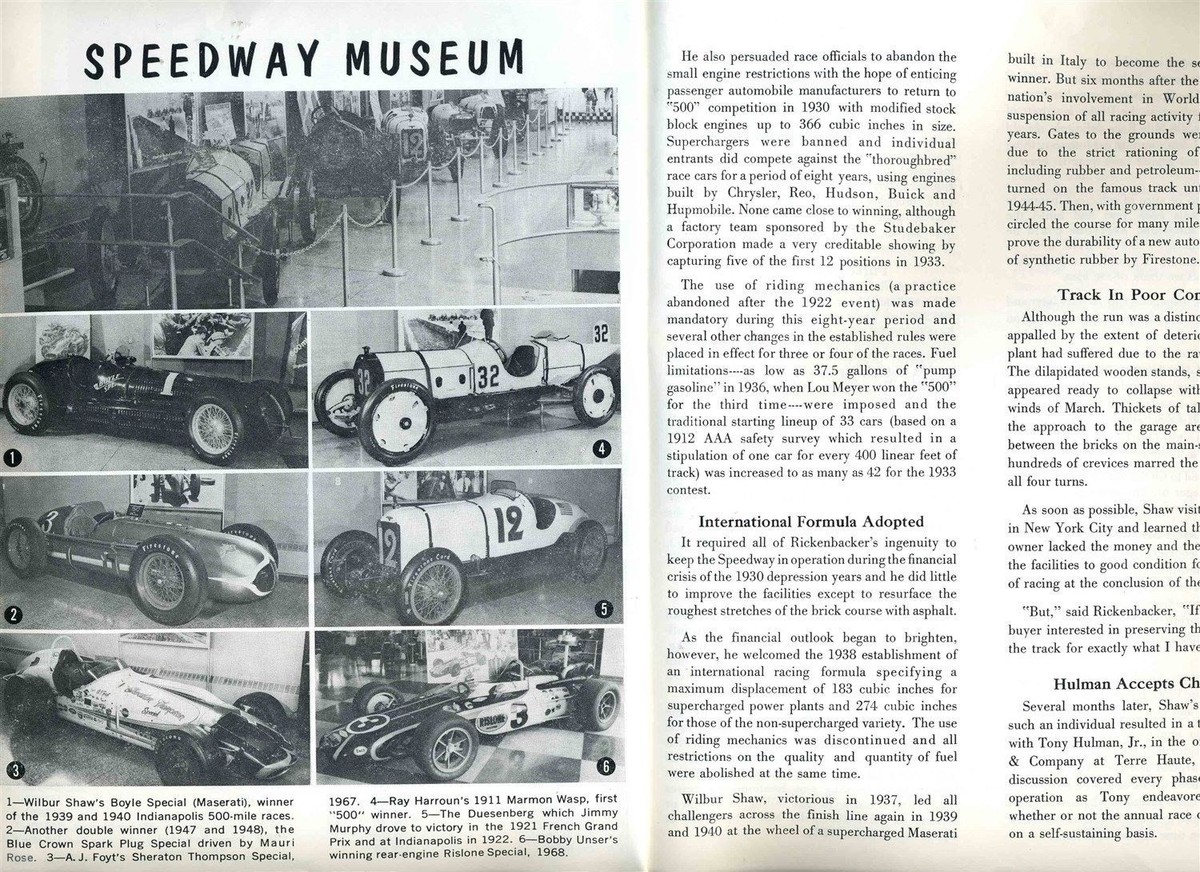 A 12 page well illustrated booklet that could be mailed. A 1975 Welcome to the Indianapolis Motor Speedway Booklet with intro by Tony Hulman. Lots of photos, track history and Indianapolis 500 Winners lIst and history. Due to the size limitations of my scanner, the entire item may not show in some of the scans.