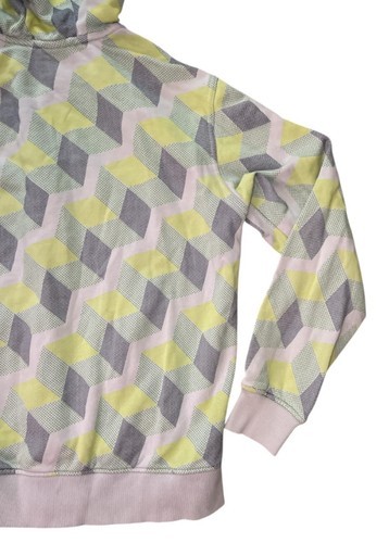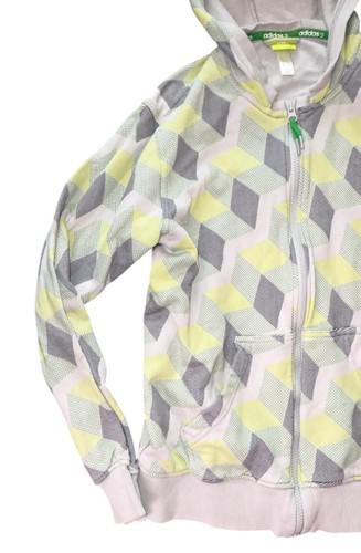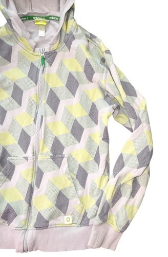 Adidas Neo Label Geometric Zip Hoodie Women?s Small Yellow Gray Pattern
