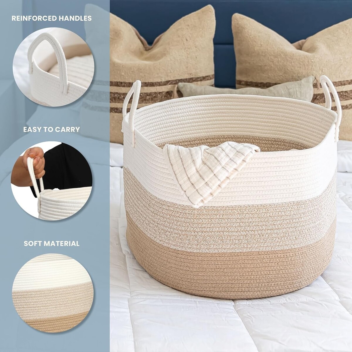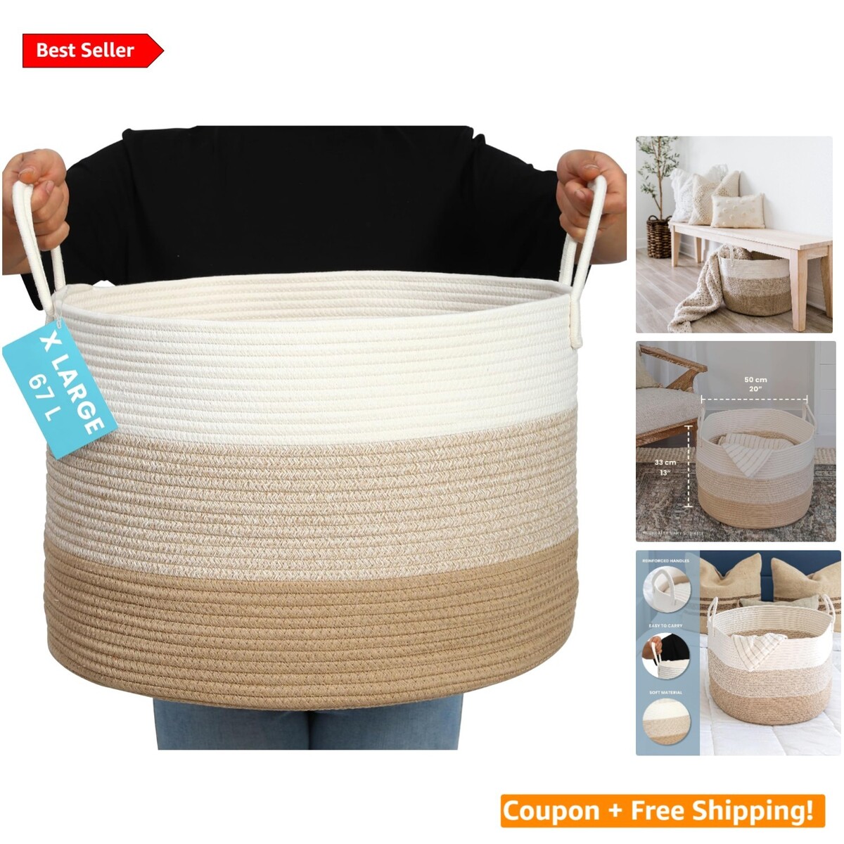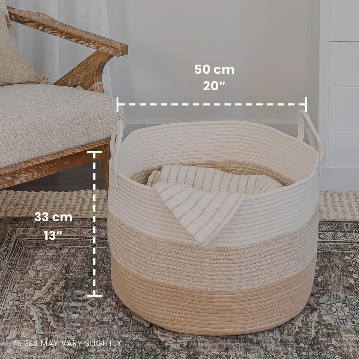 Elegant Round Cotton Rope Storage Basket - 20" x 13" for Laundry & Toys