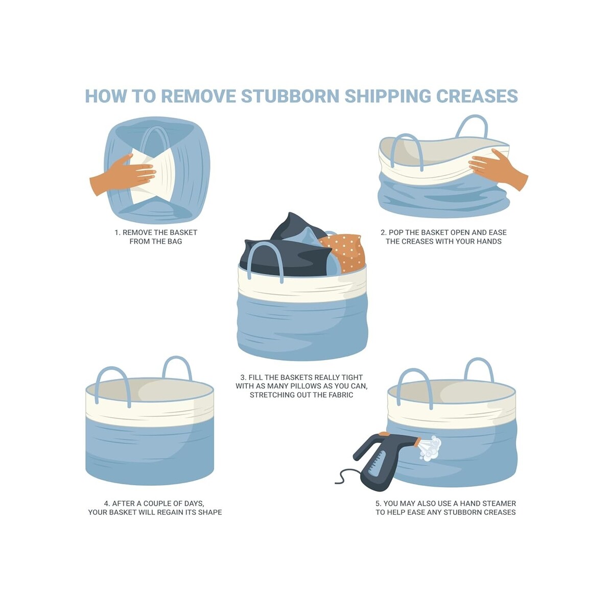 Versatile use as a blanket basket, toy storage bin, or towel container.