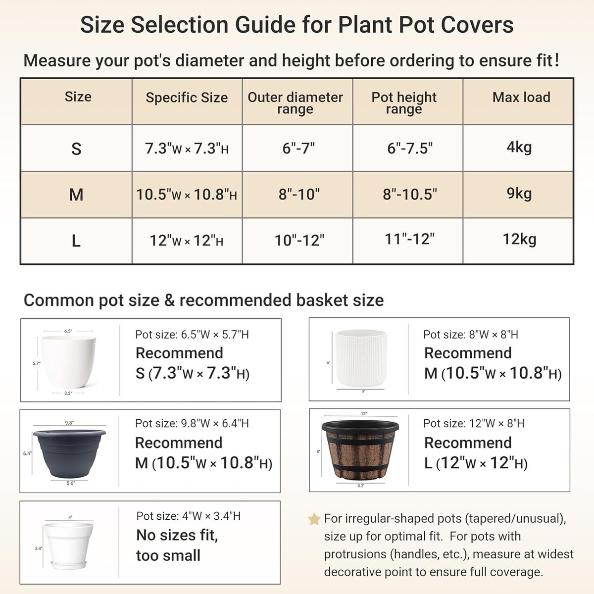 Fits pots from 8" up to 10" in diameter.