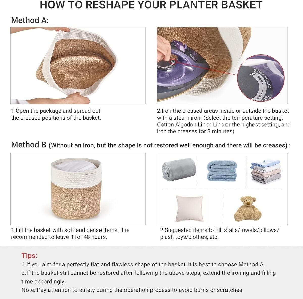 Note: The basket will regain its elegant shape when filled or ironed.