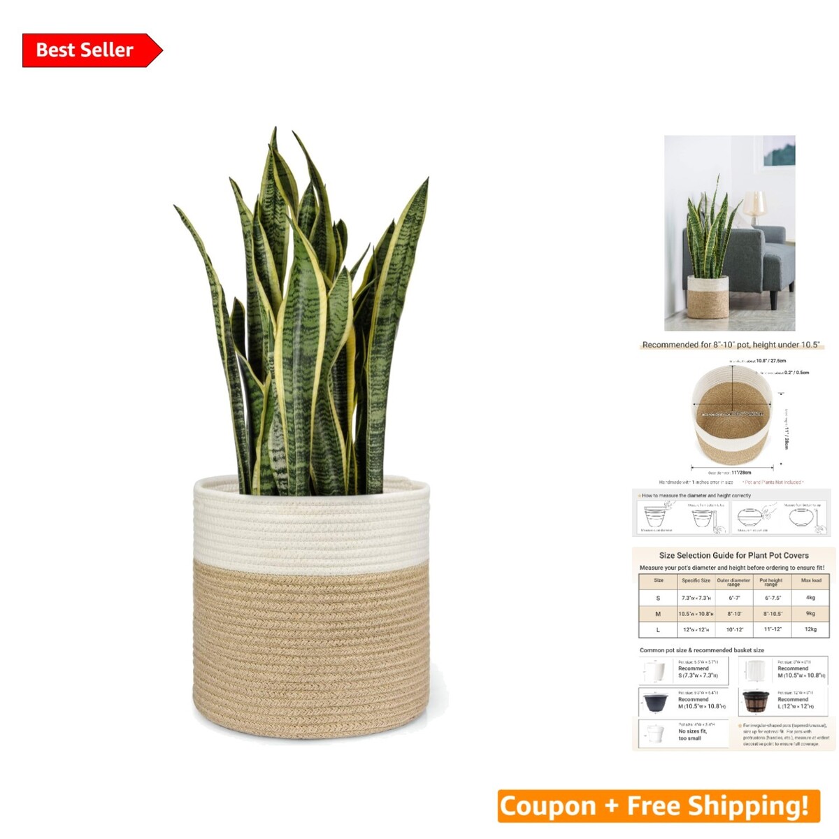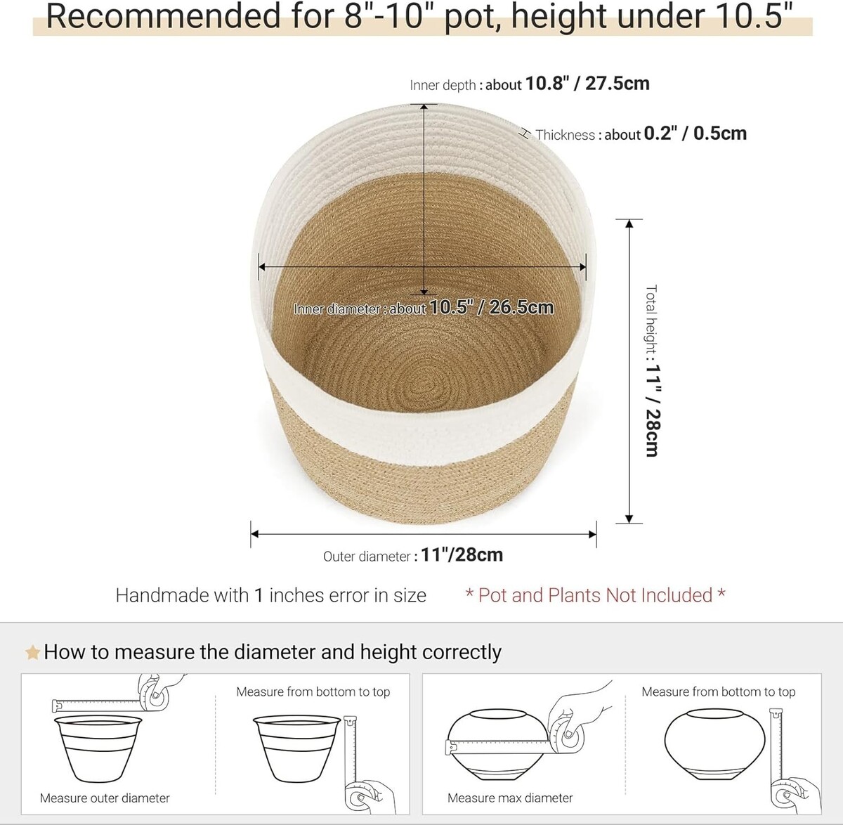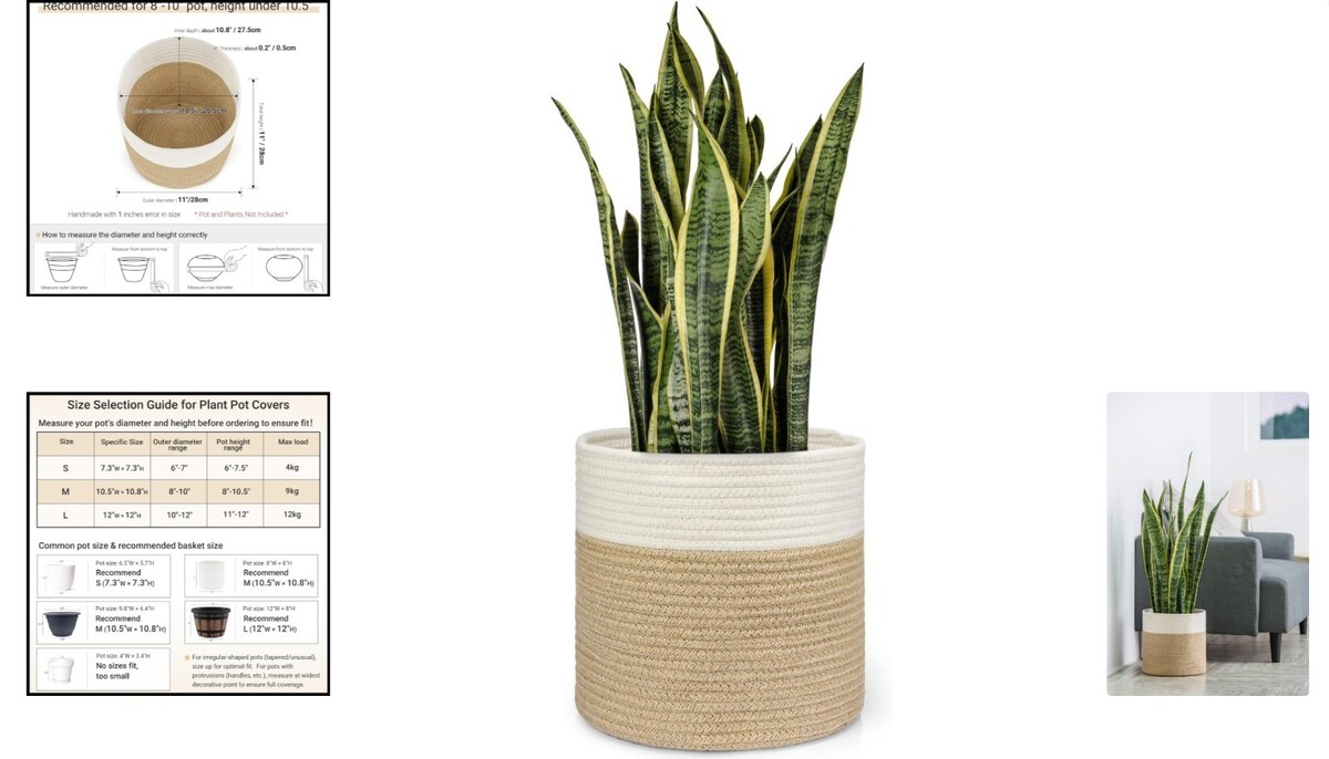 Description: Cozy beige-bottom hand-woven jute rope basket adds a stylish touch to your large plants for home, office, and restaurant decor.