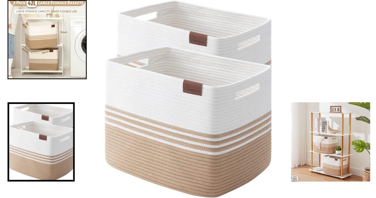 Fashionable Cotton Rope Baskets - 42L Double Reinforced 2 Pack Storage Solution