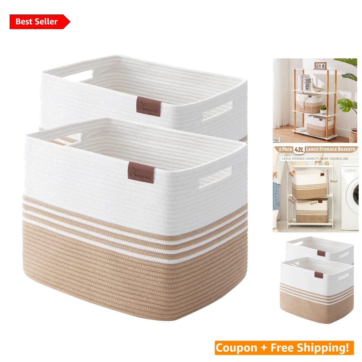 ? Ample Size: Each basket measures 16 x 12 x 12 inches, providing the perfect space for books, toys, blankets, clothing, and more.