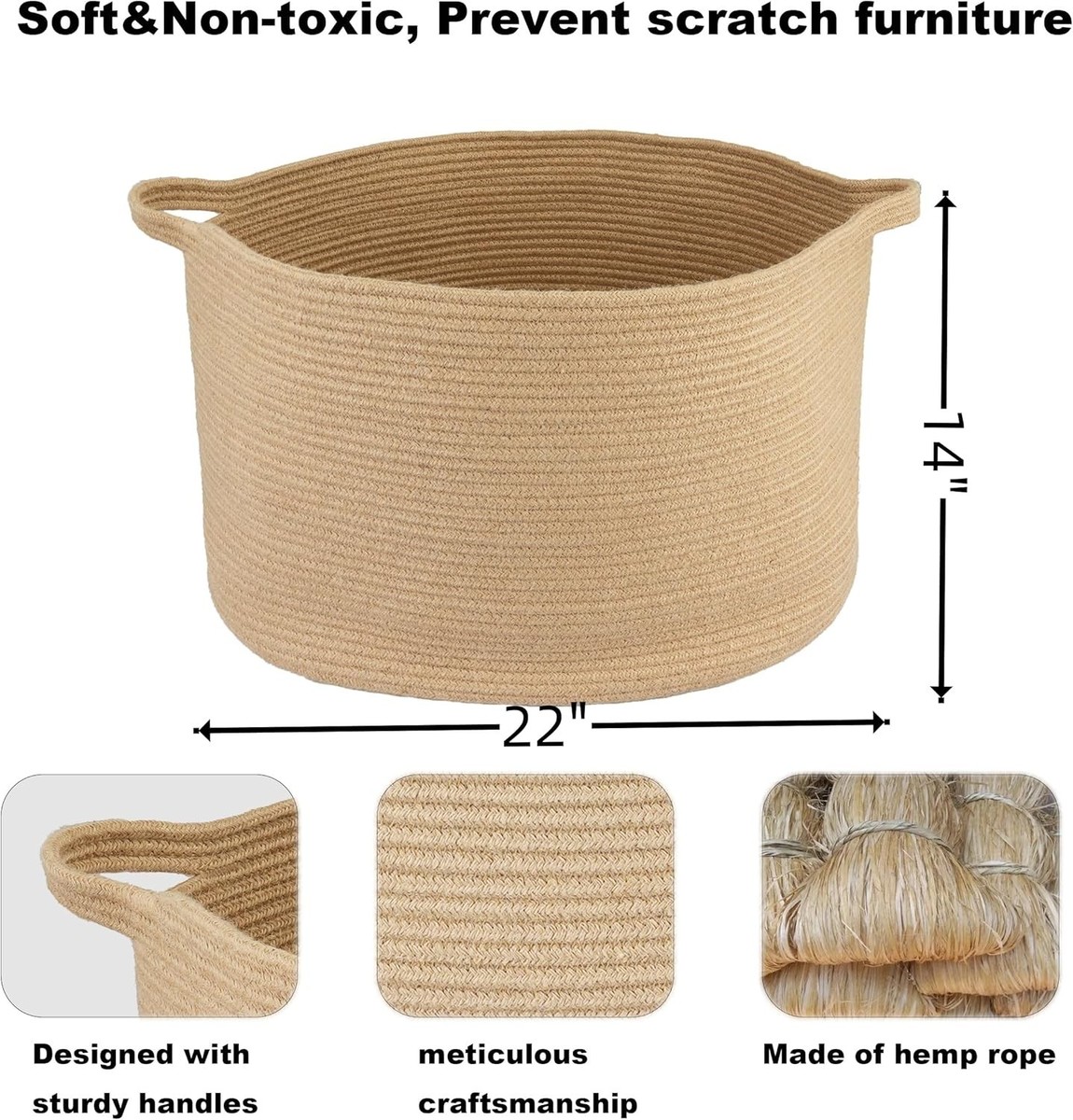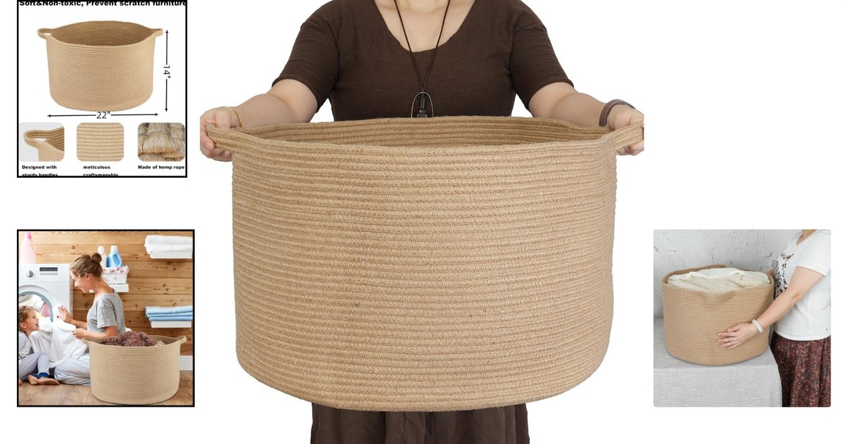 Multi-Purpose Cotton Rope Basket 22"x12" - Perfect for Organizing Any Room