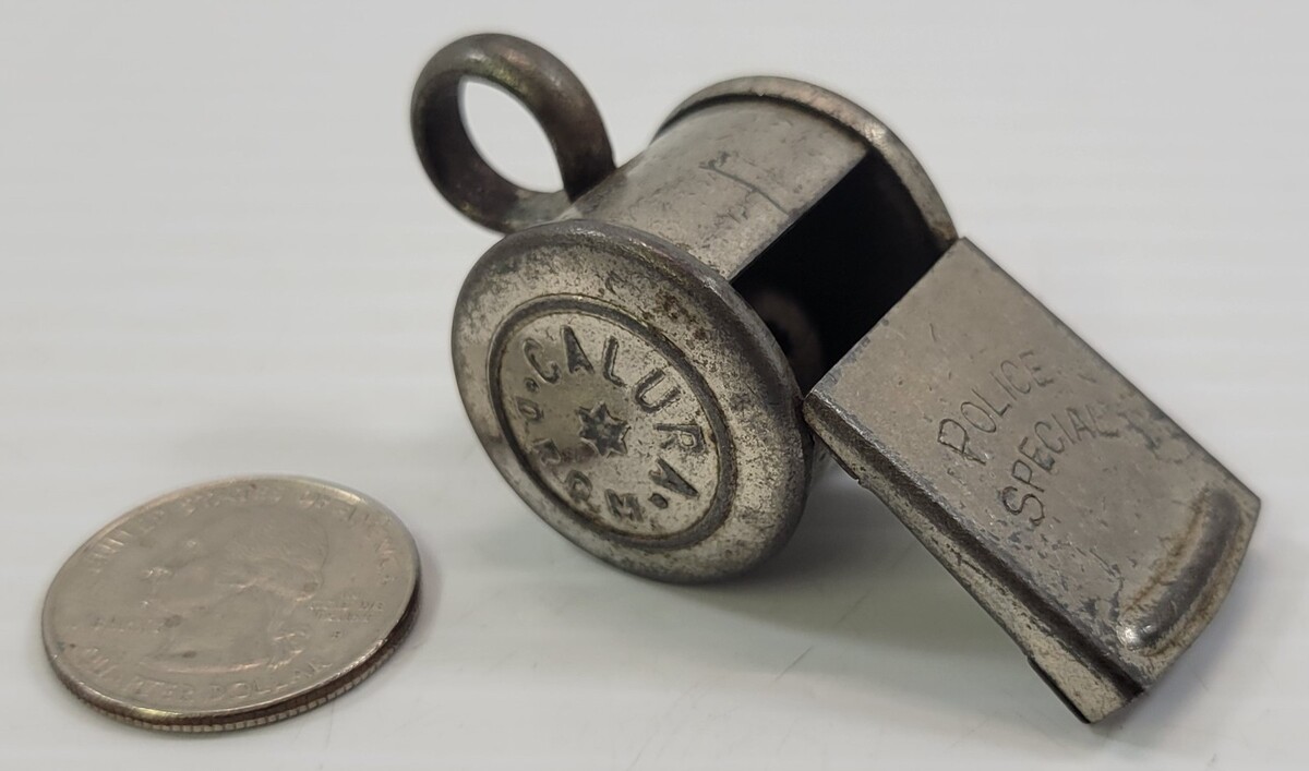 *B1) Rare Antique German Police Special Metal Whistle Calura DRGM Germany