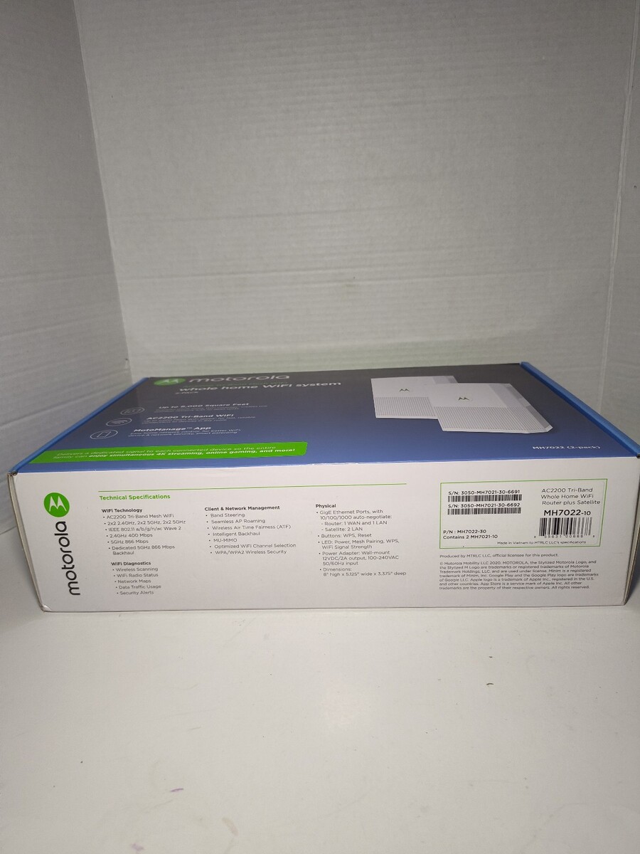 Motorola AC2200 Tri-Band Mesh WiFi System 2 Pack Whole Home Router 6000 SqFt New