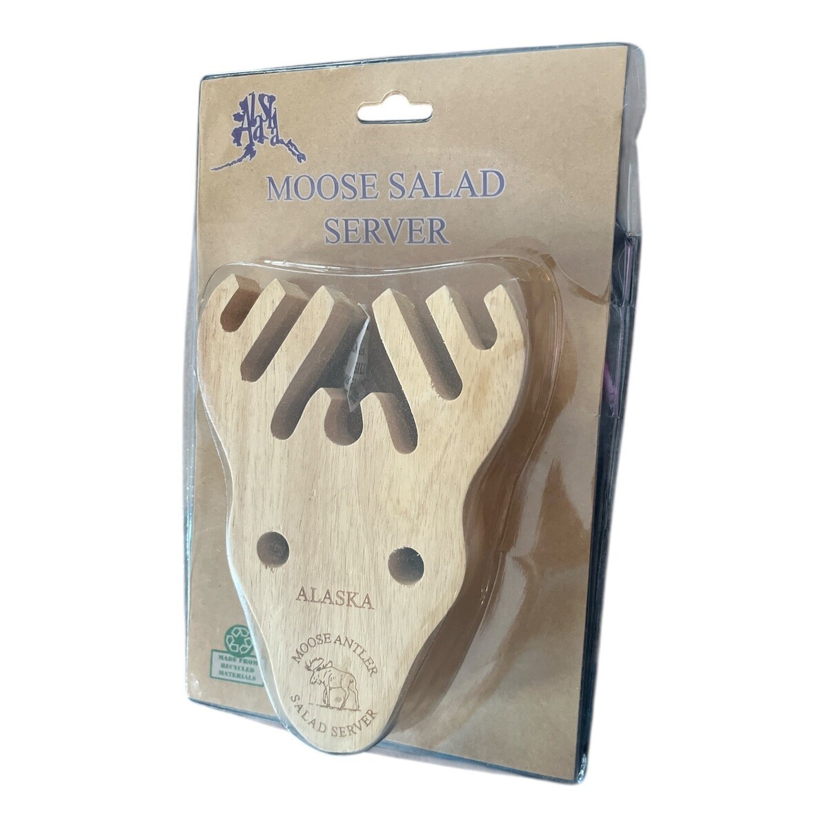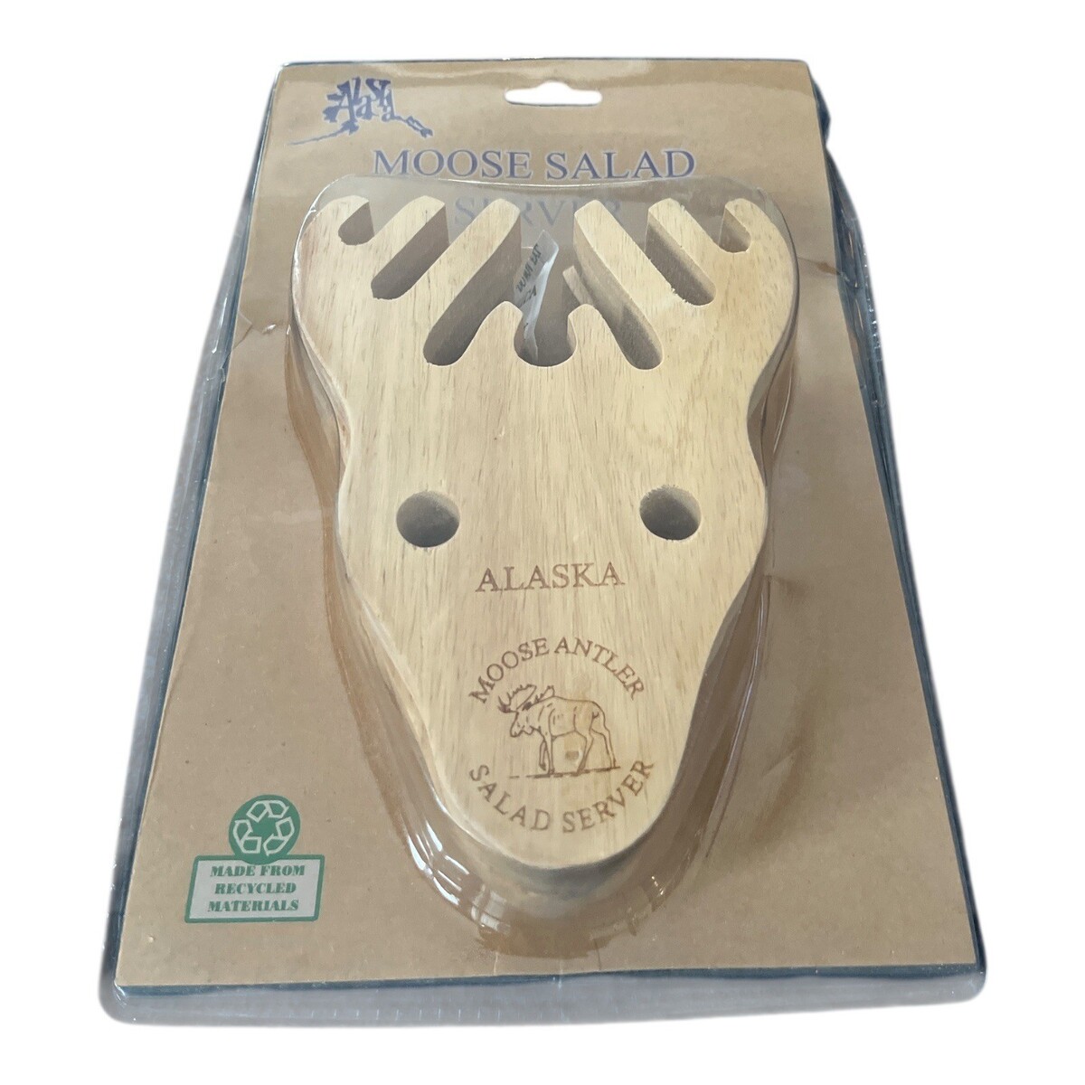 Alaska Moose Salad Server Wooden Utensil Antler Shape Novelty Kitchen Tool