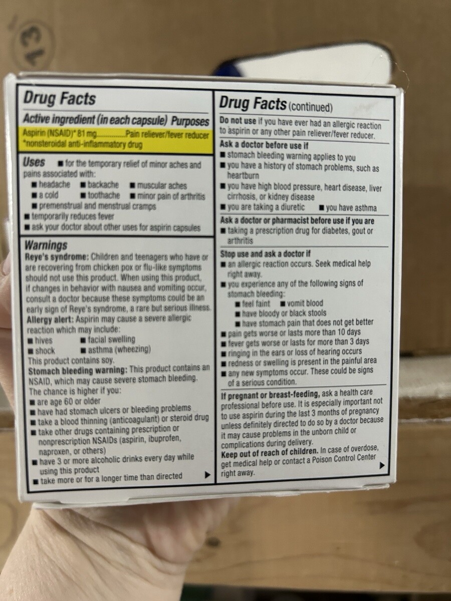 3 Vazalore Aspirin 81 mg Pain Relief Fever Reducer Liquid-Filled Capsules 12 Ct each box