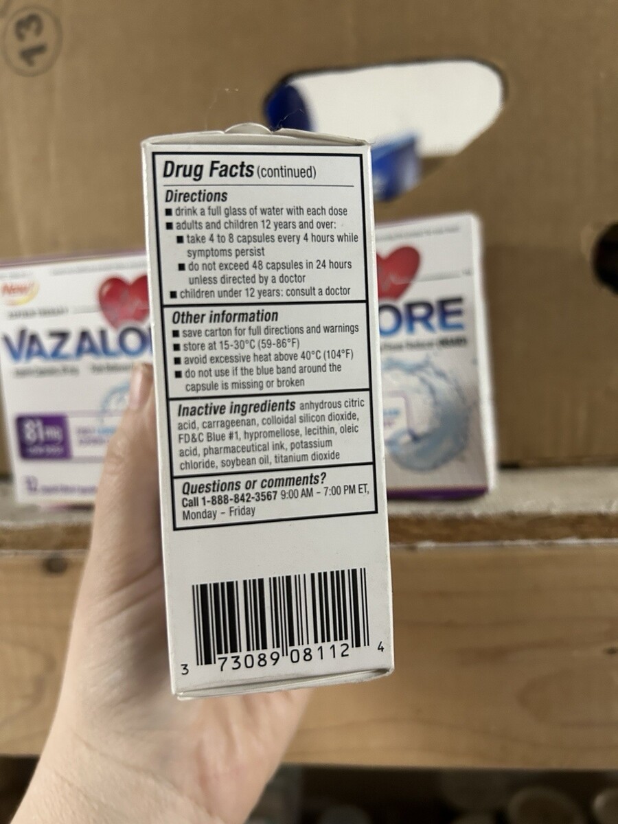 3 Vazalore 81 mg Pain Relief & Fever Reducer Liquid-Filled Capsules 12 Each