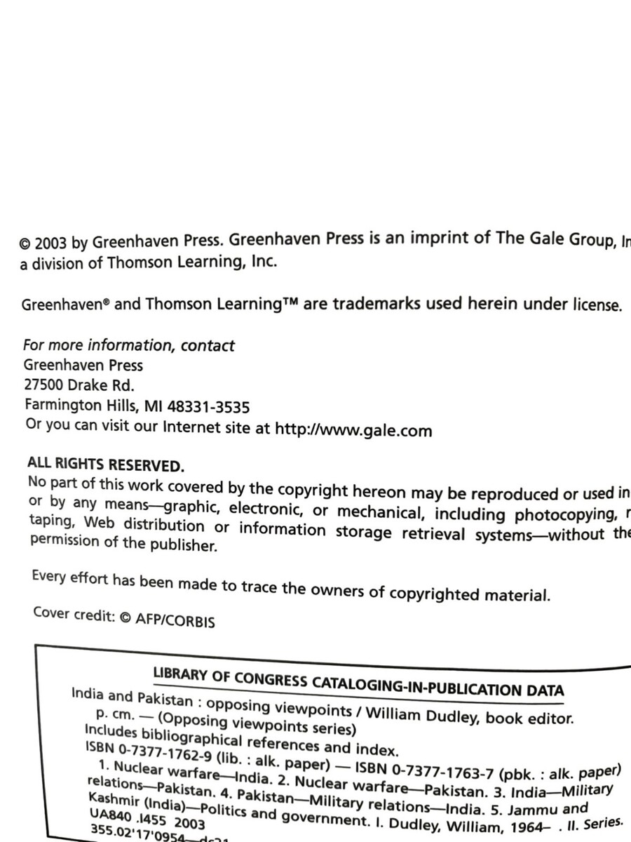 ?India and Pakistan: Opposing Viewpoints? from the Greenhaven Press series. A thought-provoking volume presenting multiple perspectives on political and historical issues between the two countries. Ideal for students, research, or anyone interested in global studies and modern history.