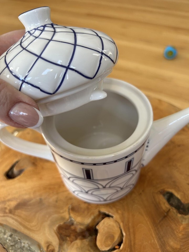 Grace's Tea-ware Ceramic Teapot With Lid Abstract Blue & White 6 1/4"H