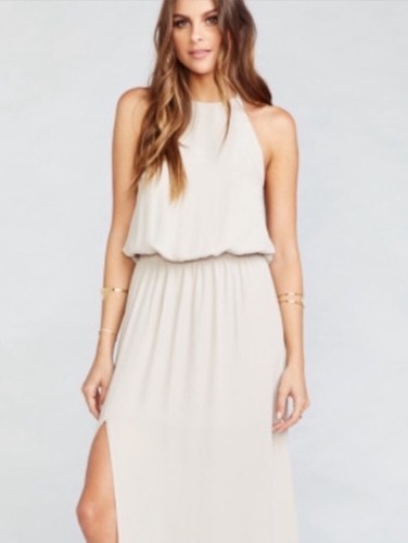 Show Me Your Mumu Heather Halter Low Back Tie Dress Beige Size XL New