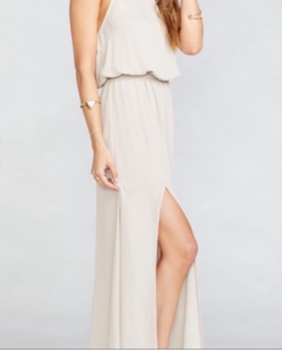New with tag. Show me the Ring, because this solid is forever. Elegant and simple but far from plain. The Heather Halter is the dress that looks absolutely stunning on everyone. She has a mid rise back, a high neckline that ties, and a cinched waistline making her undoubtedly the perfect dress for any occasion and body type. If you want to make more formal, dress her up. 100% polyester, ties at neck, self lined. Lined as a mini dress. New in poly bag. Never used. Friend?s wedding was canceled so didn?t wear it.