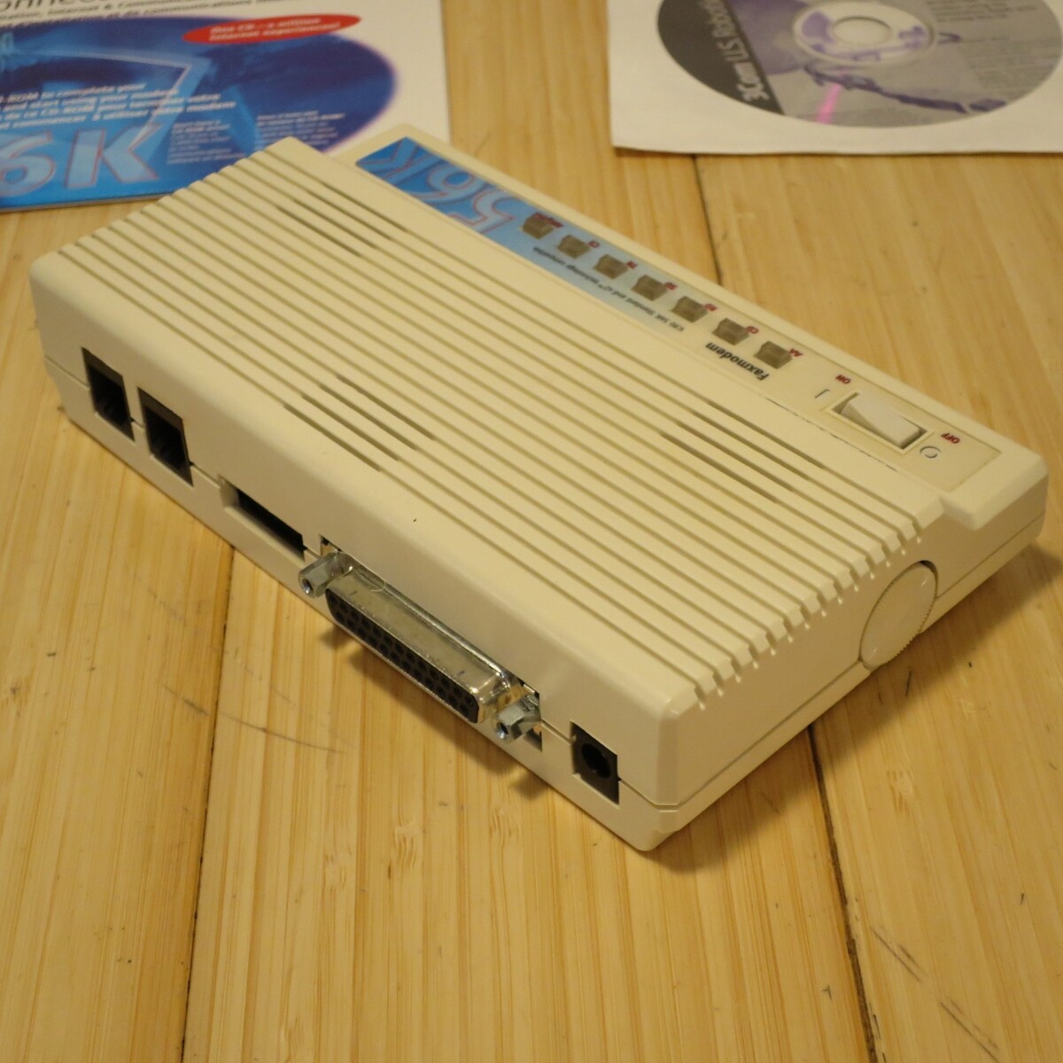 US Robotics 56k Fax Modem (1998) with Driver CD, Power Cord & Serial Cable