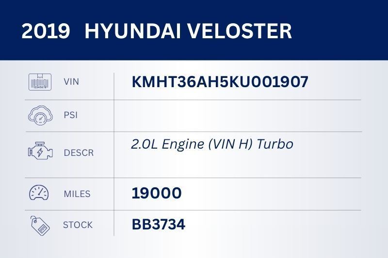 VELOSTER 19-21 2.0L, VIN H (8th digit, turbo)