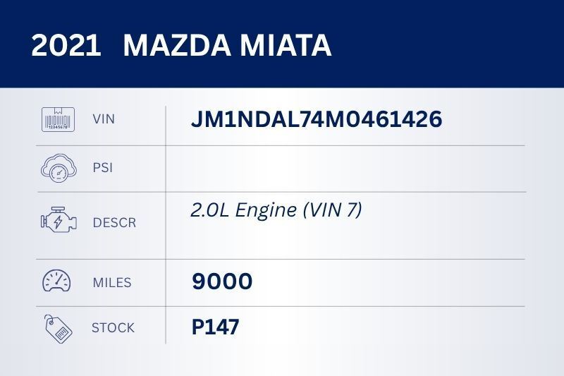 Engine 2.0L VIN 7 8th Digit 9,000 Miles Fits 2019-2023 MAZDA MX-5 MIATA #44958