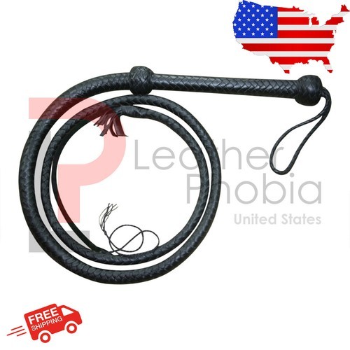 This high-quality handmade leather bullwhip is crafted and durability in mind. Measuring 4 feet in length, it features a strong 12-plait braided design, making it both functional and visually appealing. The classic black finish gives it an authentic and timeless look, ideal for collectors, costume use, or display.