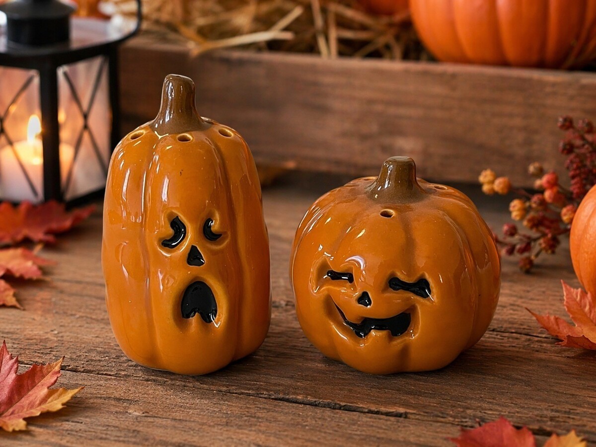? Set of 2 ceramic pumpkin shakers
