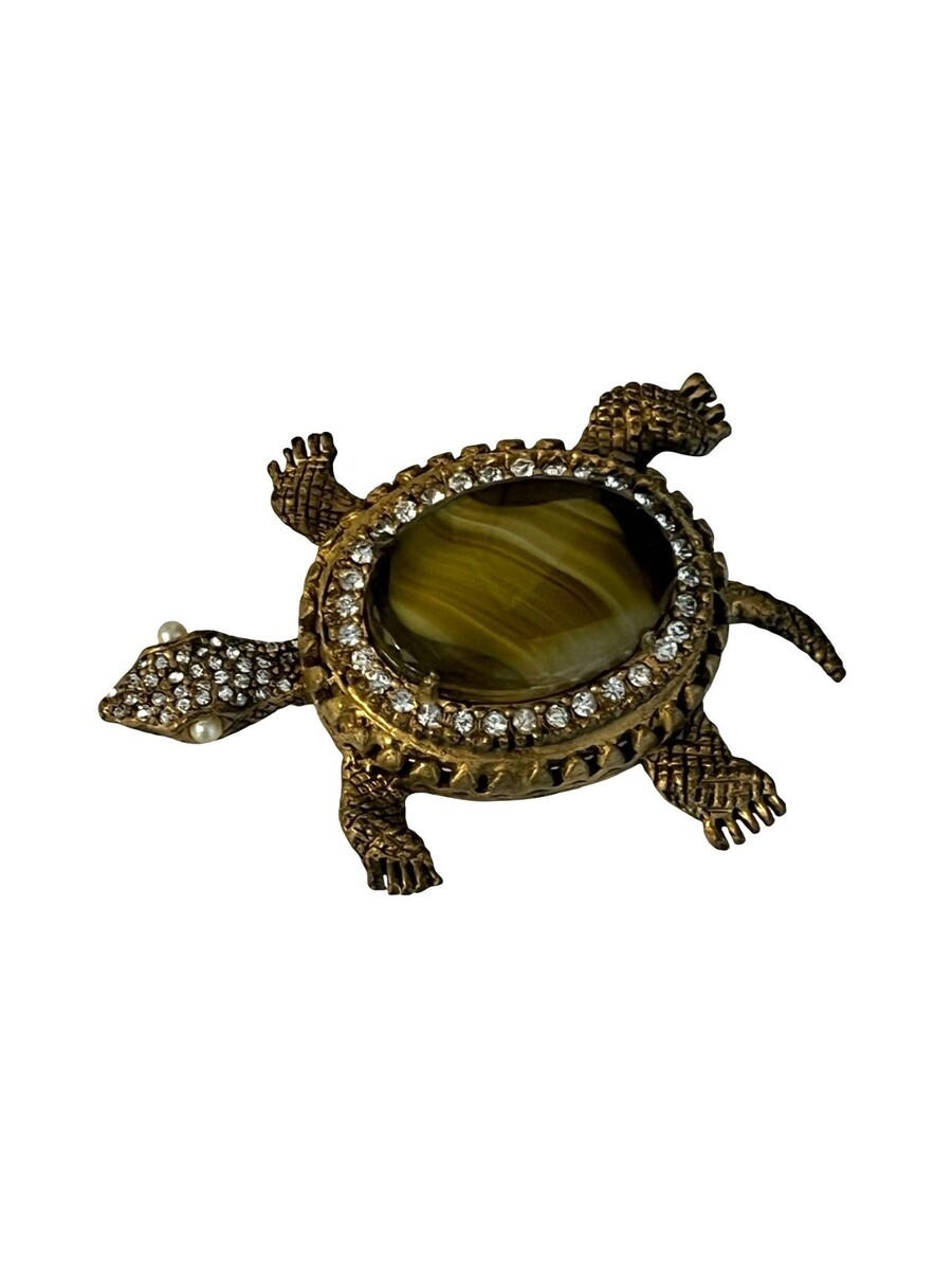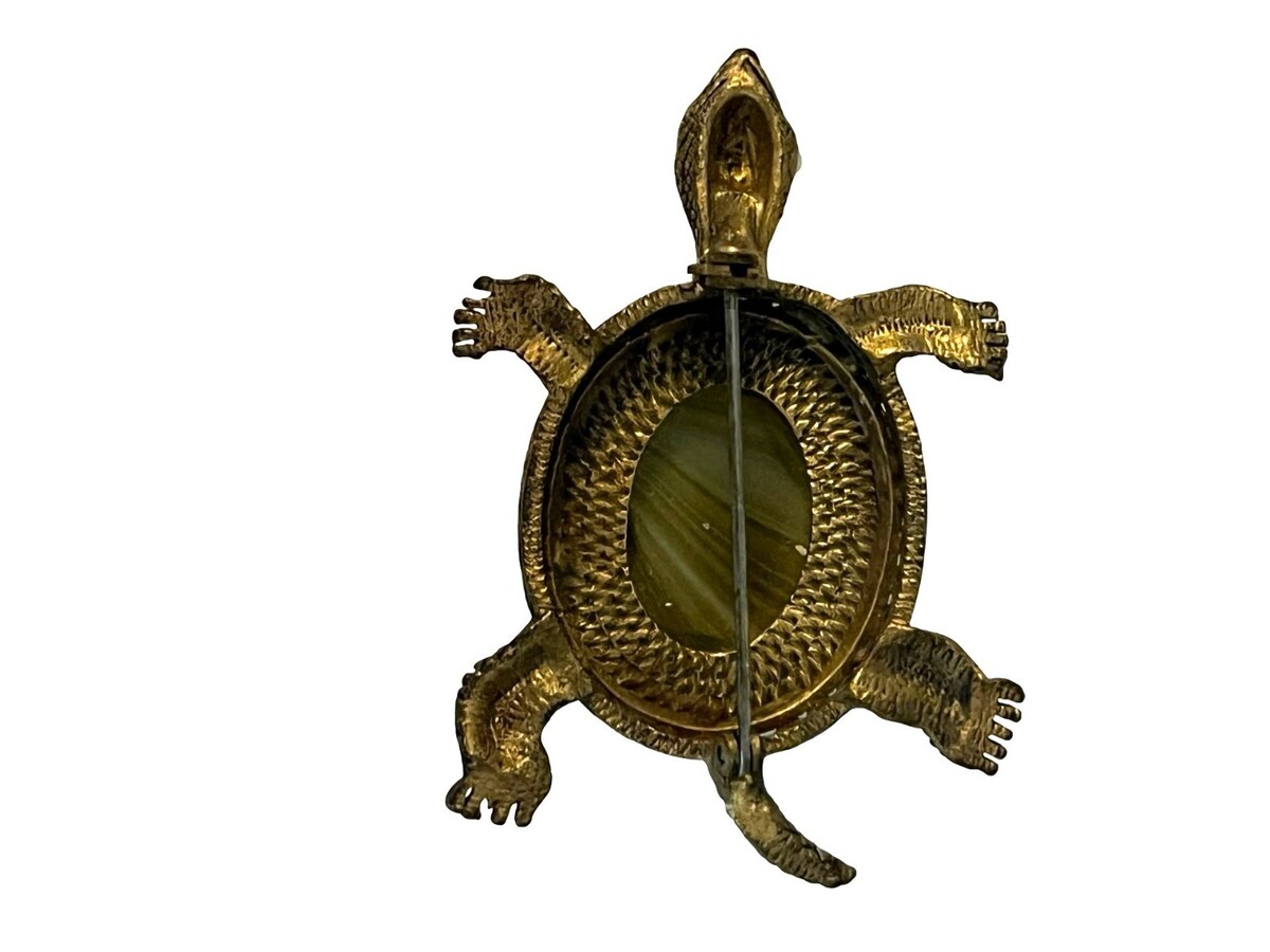 Vintage Turtle Brooch Gold Tone Tiger Eye and similar items