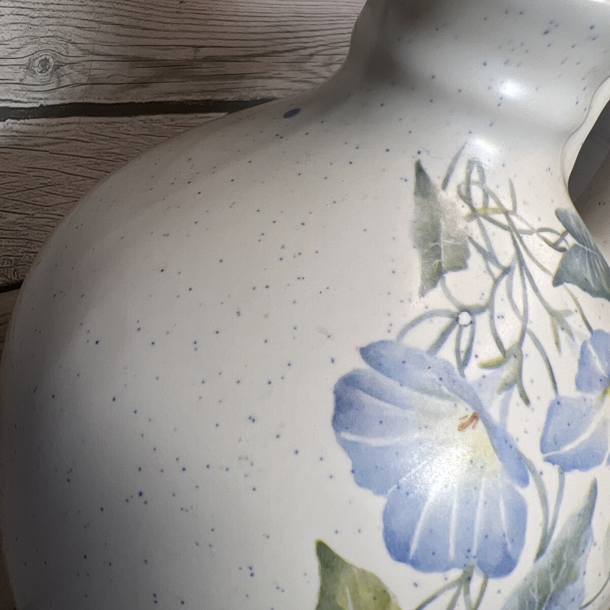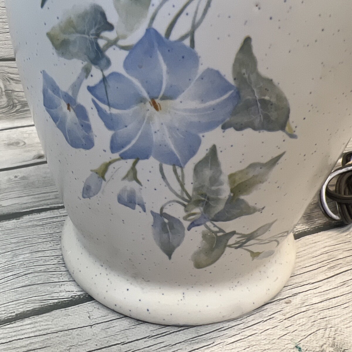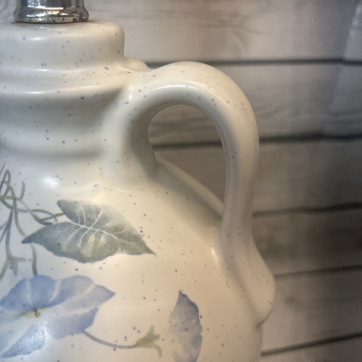 Studio Pottery Stoneware Jug Lamp Blue Speckle Floral Primitive Farmhouse