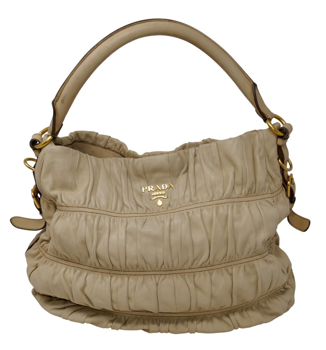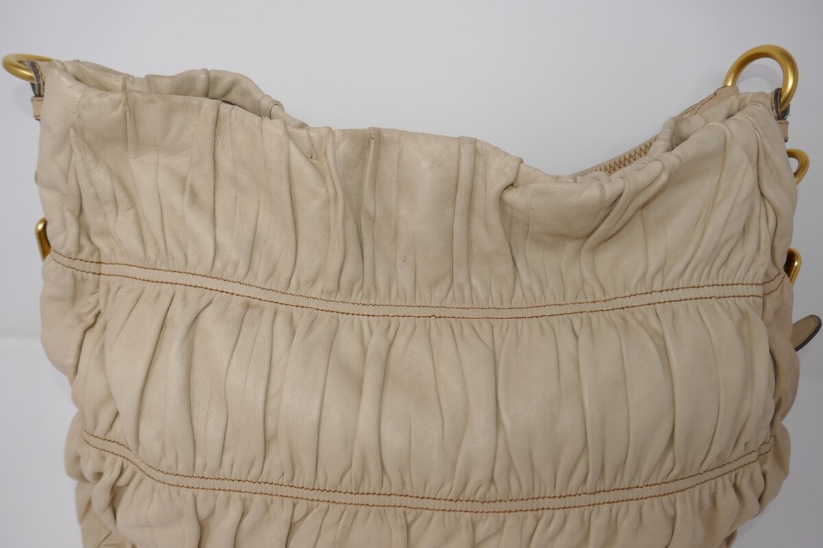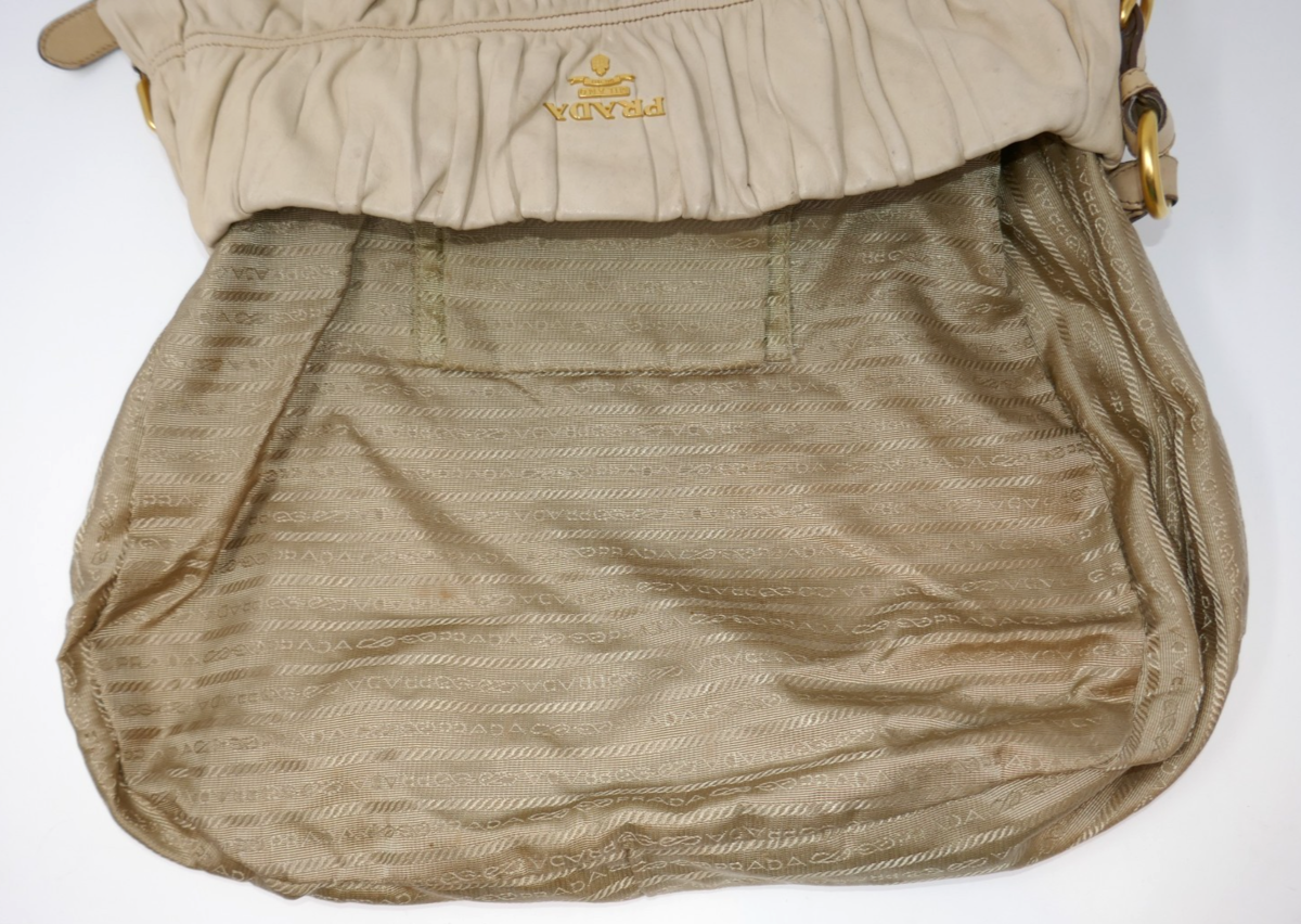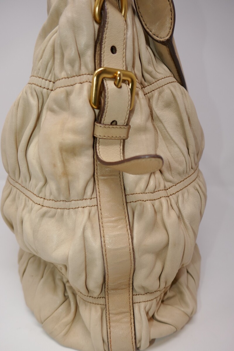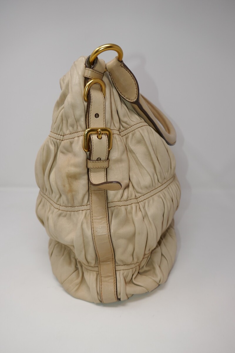 Prada Nappa Gaufre Convertible Beige Ruched Leather Hobo Bag