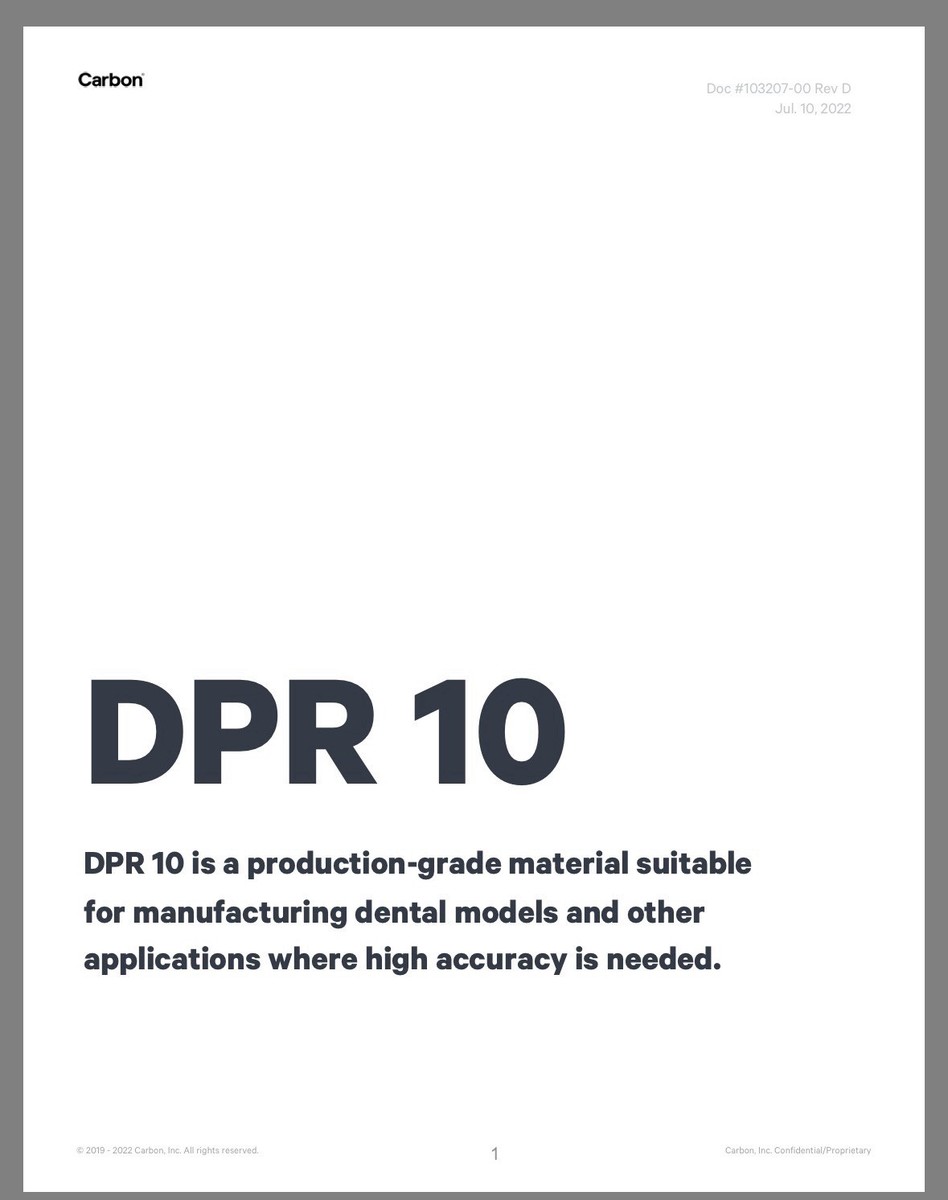 This is a genuine Carbon DPR 10 Stone dental resin used for high-precision dental models and professional 3D printing applications.