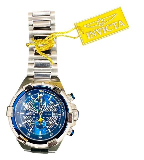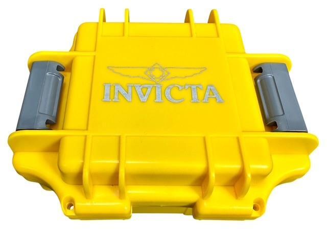 New in Yellow Case INVICTA Aviator Men's Quartz 50.5mm Quartz Watch Model #28111 New never used but unfortunately the papers have been misplaced The watch that has been in storage for a while so if you are planning on wearing them in the water, we suggest having it checked by a watchmaker to make sure the seals are in place as they could have deteriorated over the time We guarantee authenticity on all of the items we sell Comes as shown