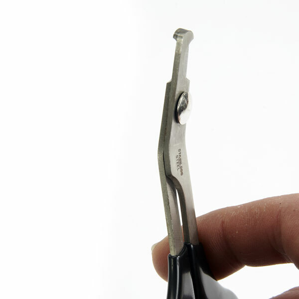 Scissors are angled for easier trimming.
