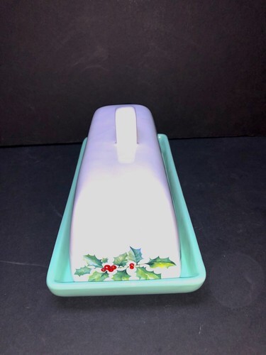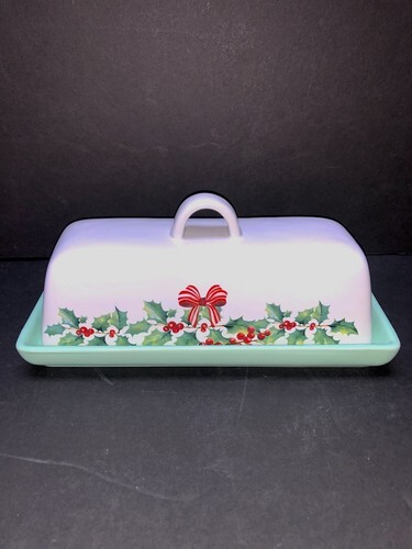 Harvest Green Studio of England Oversized Ceramic Butter Dish Christmas Holly