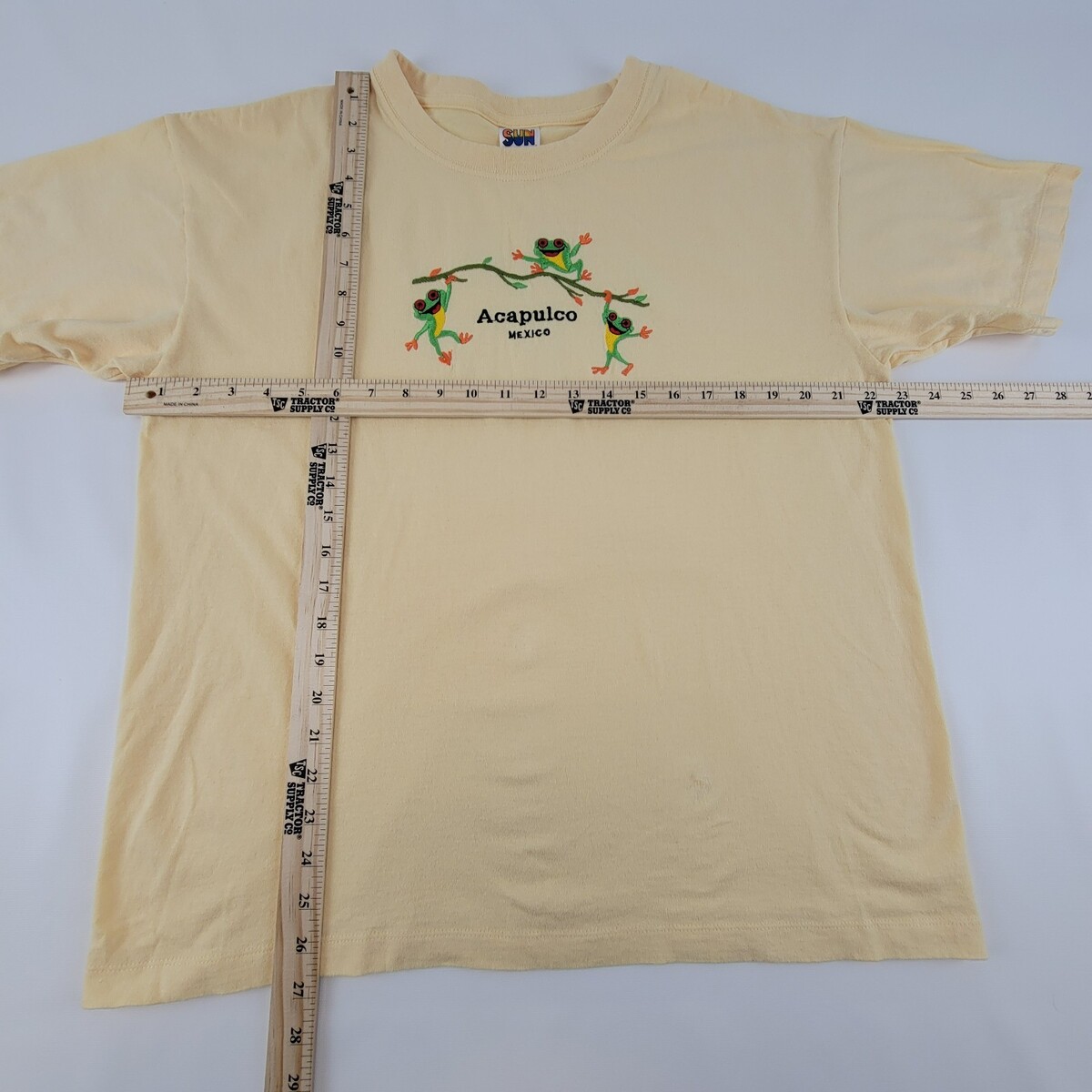 Sunshine Beachwear XL Yellow T Shirt Acapulco Mexico Tree Frog Embroidery