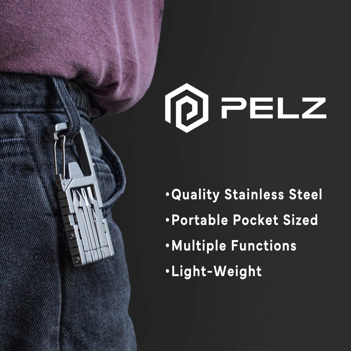 Introducing the PELZ Pocket Tool Carabiner Multitool, a pinnacle of convenience and utility for everyday carry (EDC) enthusiasts. This meticulously engineered multitool combines the essential functionalities of an EDC carabiner, and a keychain multitool, making it an indispensable companion for any task, adventure, or emergency.